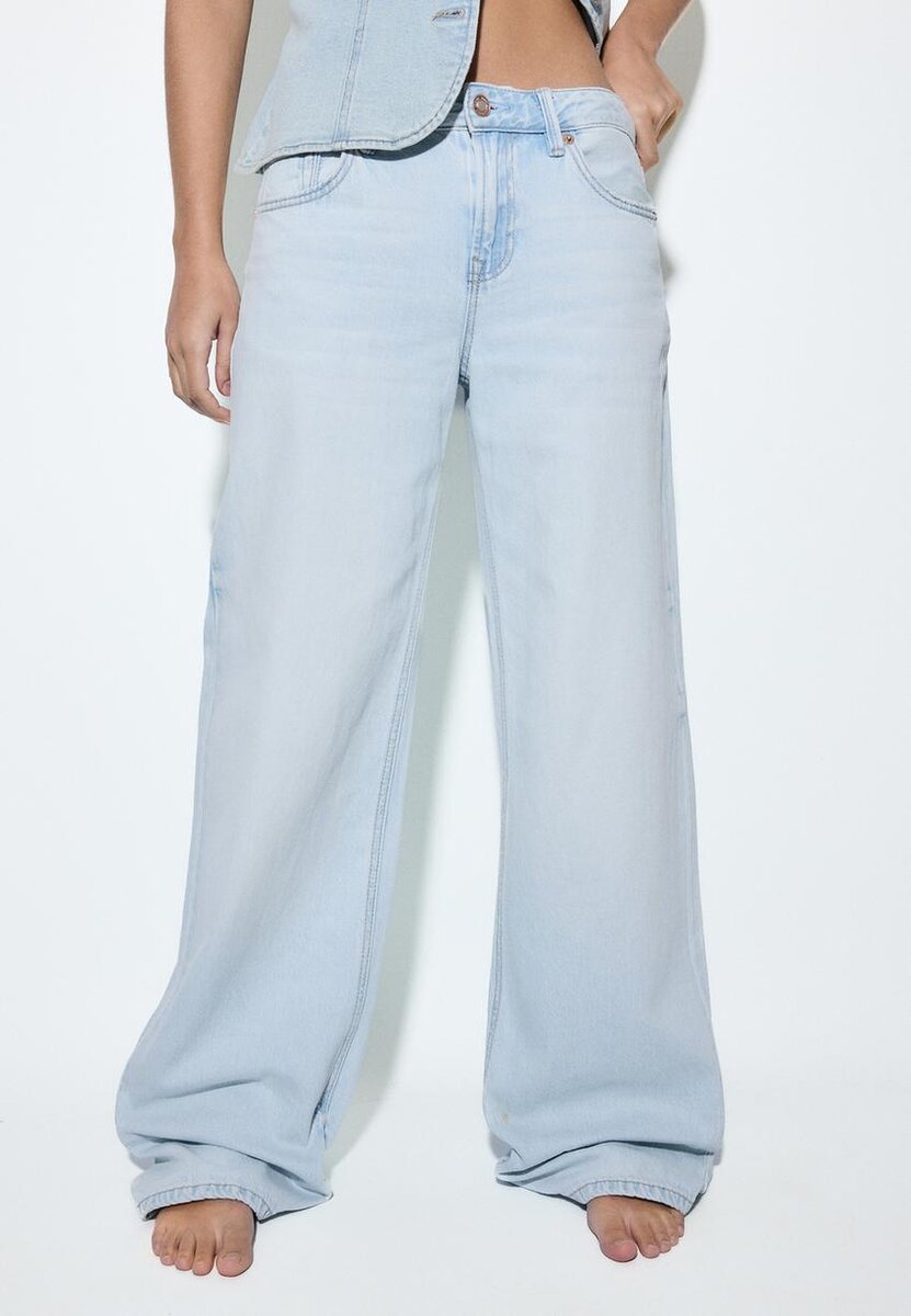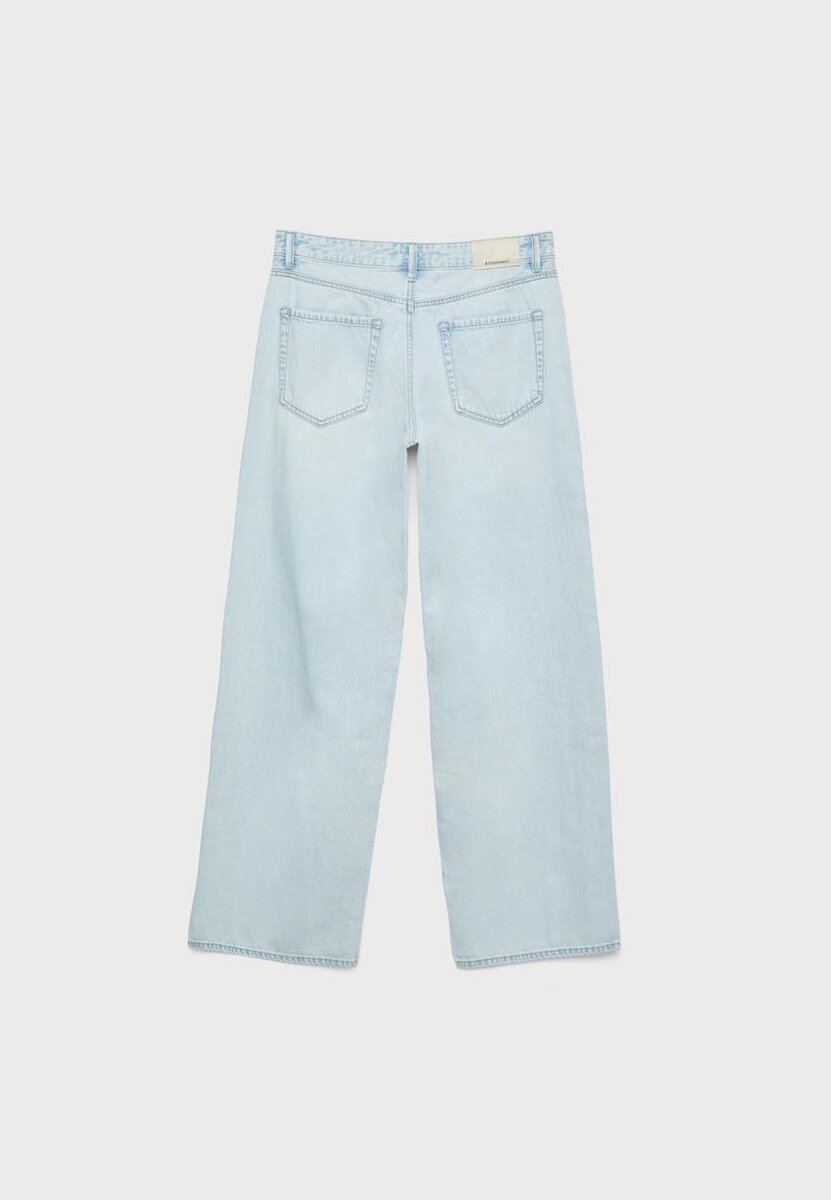 Jean taille basse à jambes larges avec passants de ceinture. Doté de poches avant et de poches plaquées arrière. Coupe droite. Braguette à fermeture éclair sur le devant et bouton métallique sur le haut.