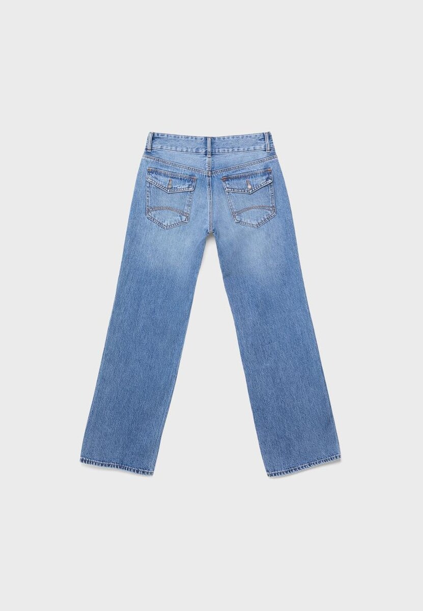 Jean droit taille basse avec passants de ceinture. Doté de poches avant, de poches arrière à rabat avec boutons métalliques, d’une braguette zippée et d’une fermeture à double bouton métallique.