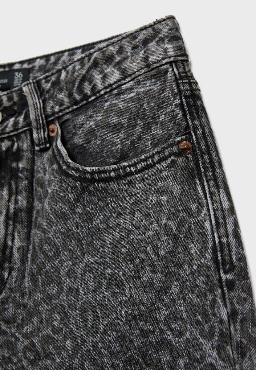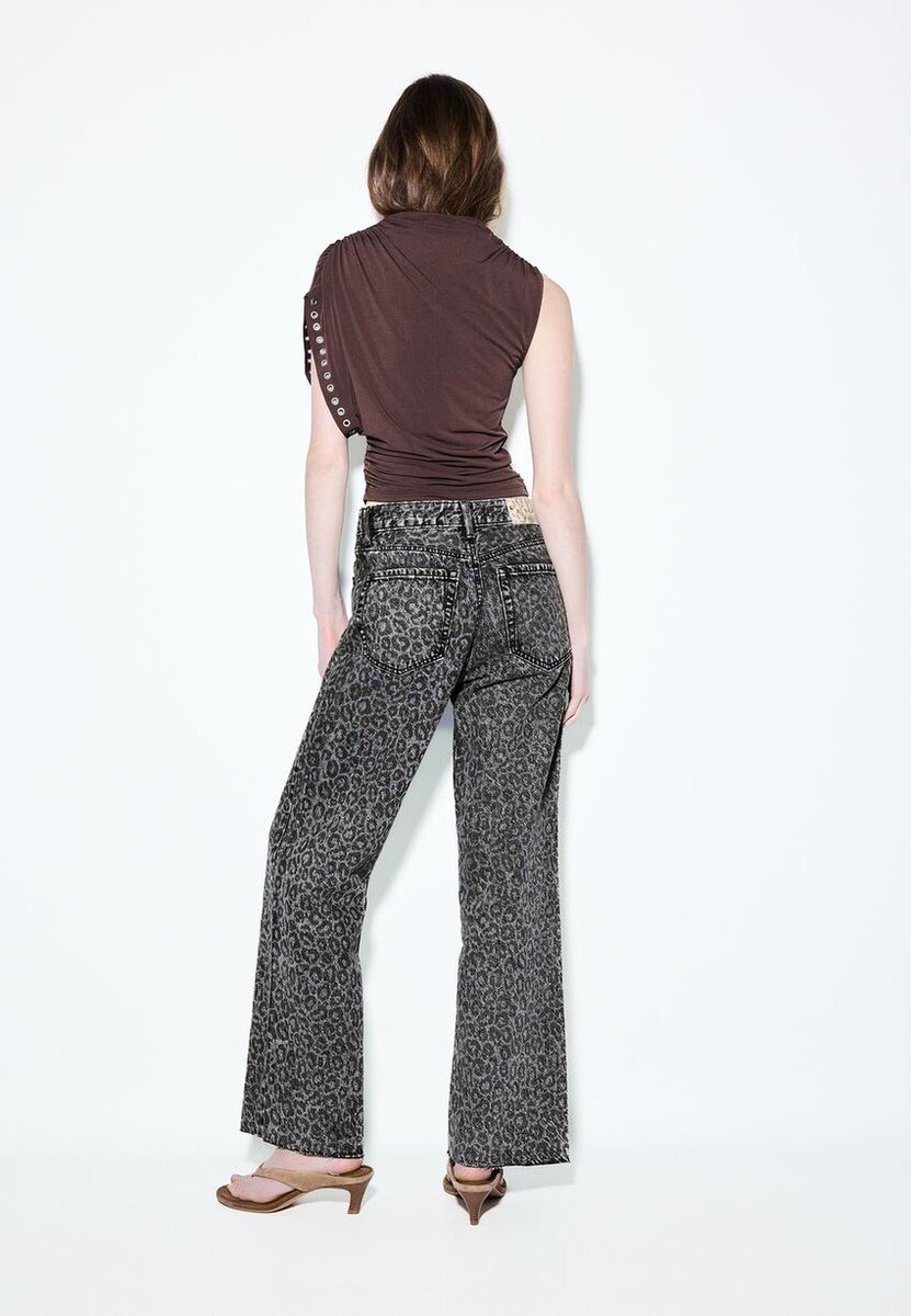 Jean droit taille moyenne. Doté de passants de ceinture et d’un design à cinq poches. Fermeture à glissière sur le devant et boutons métalliques. Détail imprimé léopard.
