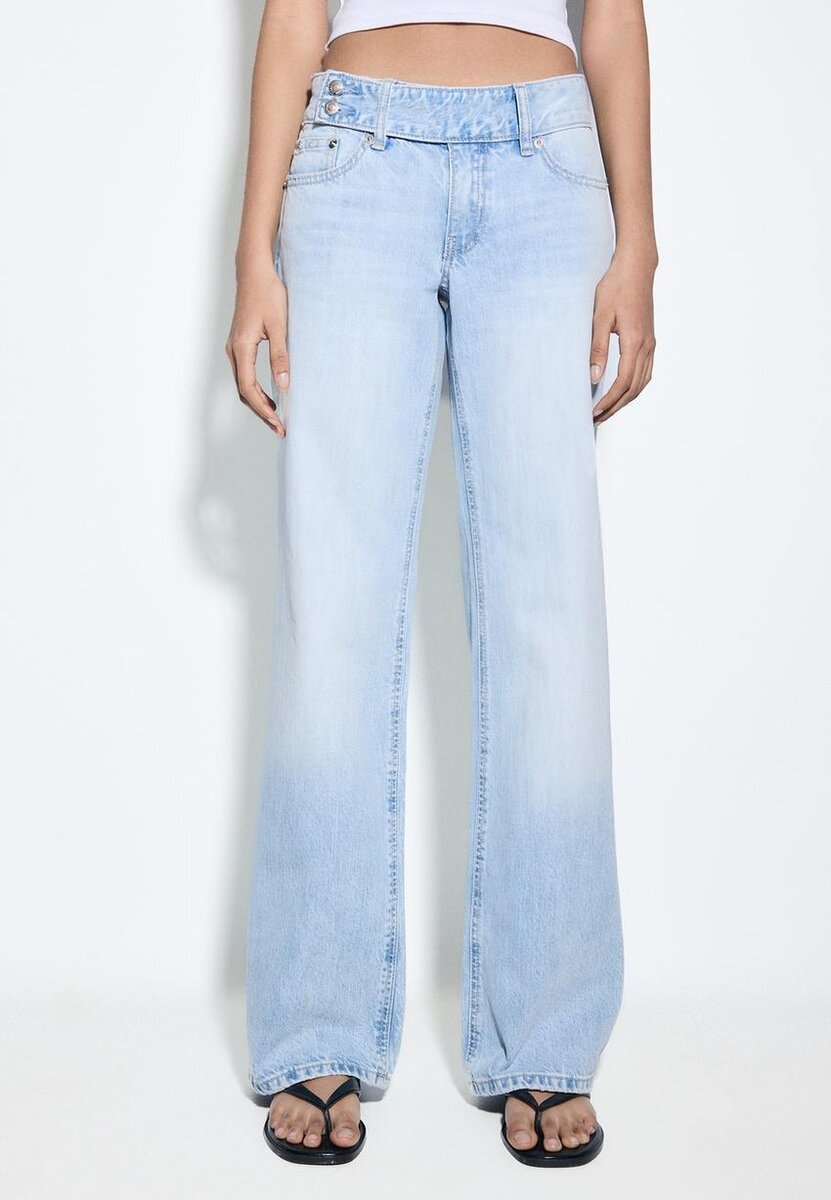 Jean taille basse à jambes droites et passants de ceinture style marteau