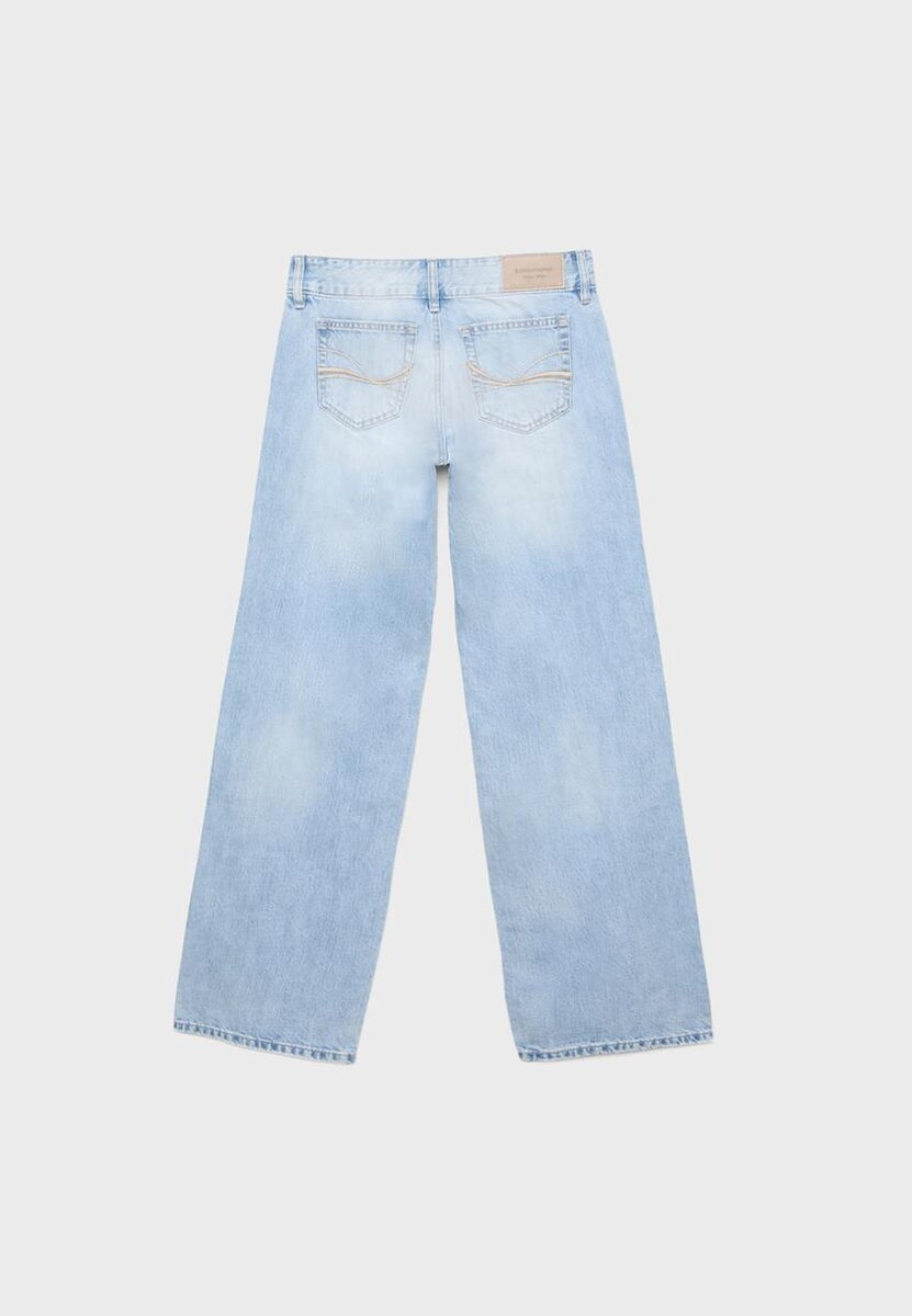 Jean taille basse à jambes droites et cinq poches. Doté d’une ceinture style marteau avec détails de passants de ceinture. Fermeture à glissière sur le devant et double boutonnage. Détail gravé sur les poches arrière.