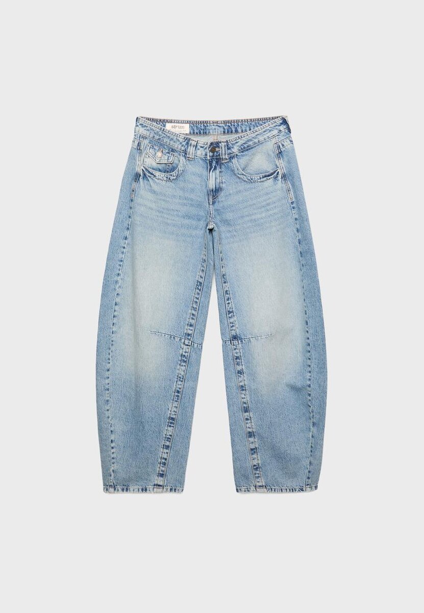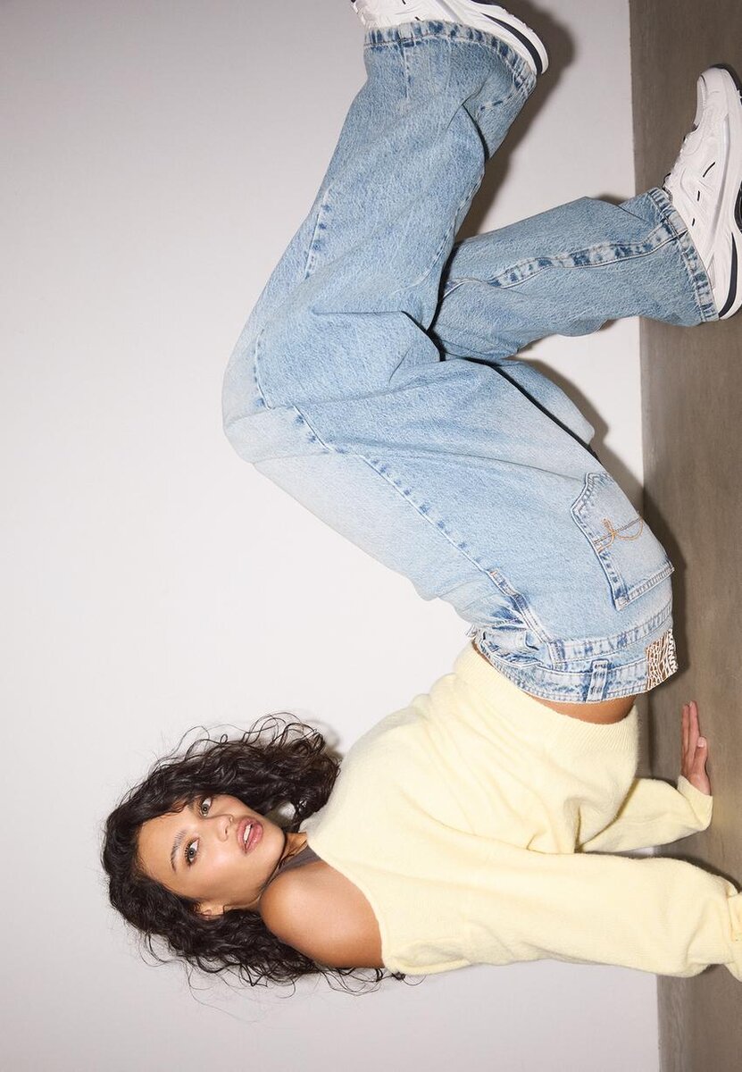 Jean taille basse à jambes Wide Leg. Avec ceinture, poches avant et poches arrière plaquées. Fermeture à glissière et bouton.