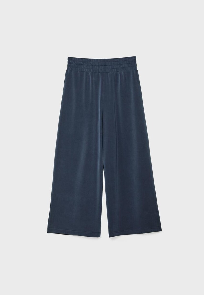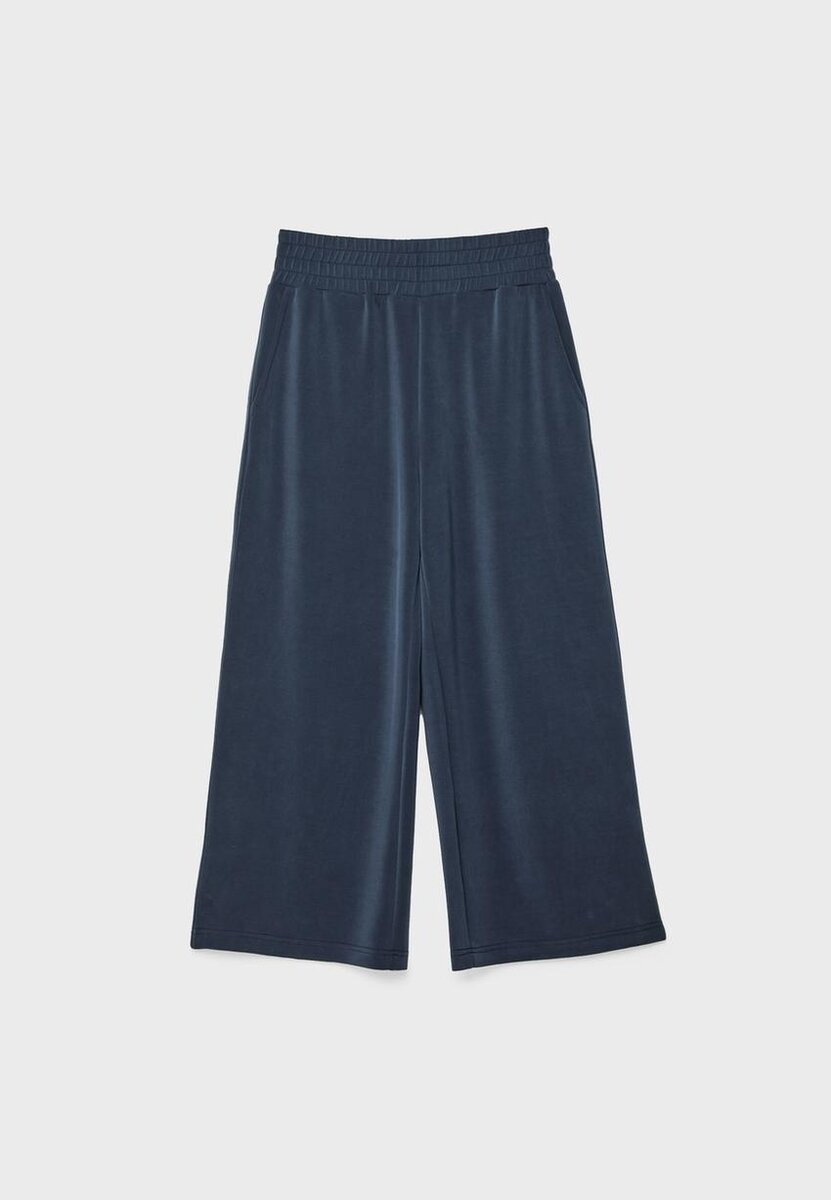 Pantalon fluide Soft-Feel avec une taille élastiquée. Doté de poches latérales et d’une coupe courte à jambes larges. Disponible en plusieurs couleurs.