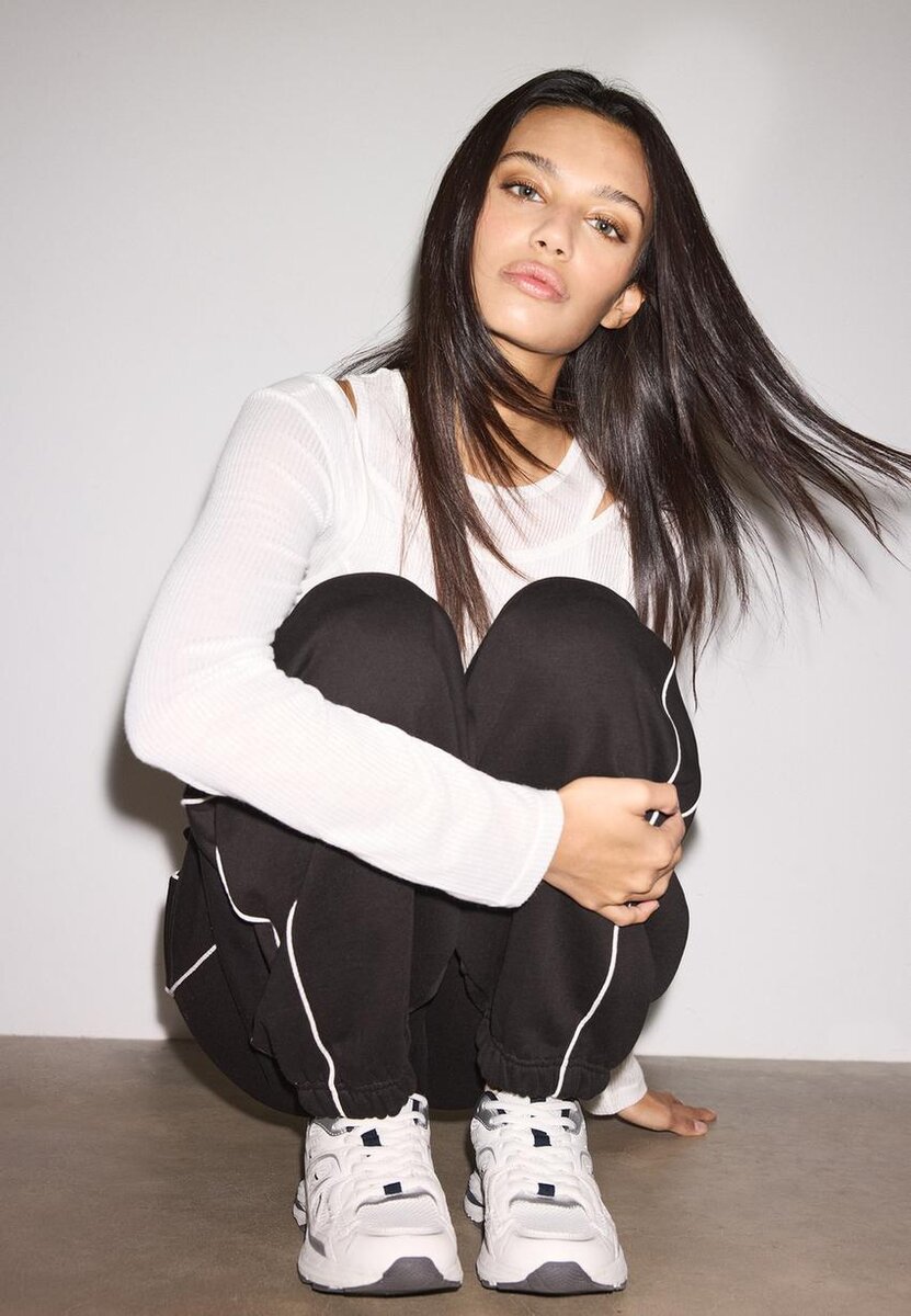 Pantalon taille moyenne avec ceinture élastiquée. Orné d’ourlets à revers et de passepoils contrastés sur les côtés. Disponible dans une gamme de couleurs.
