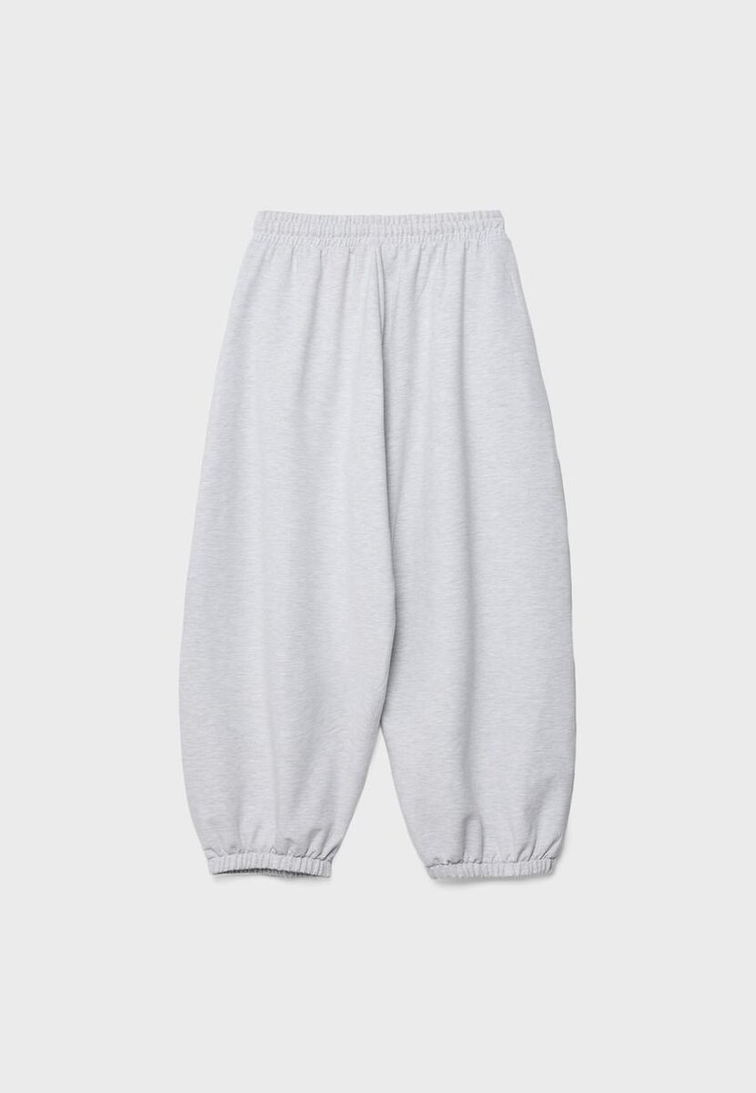 Pantalon de jogging à volume ballon et jambes Wide Leg. Taille mi-haute élastiquée. Poches latérales. Ourlets finis par des revers élastiques de type sarouel.