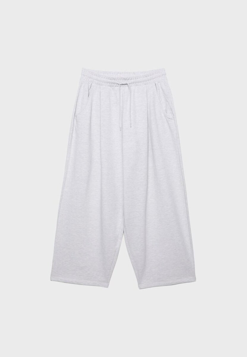 Pantalon à taille mi-haute avec ceinture élastiquée à cordon de serrage réglable. Poches latérales. Avec détails de pinces sur le devant. Ourlets style sarouel.