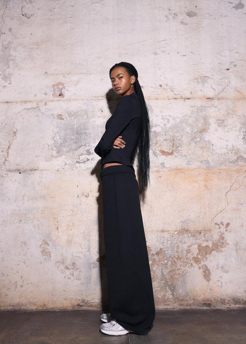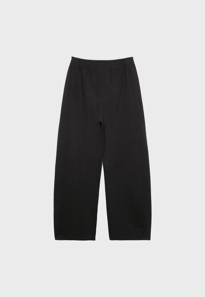 Pantalon de jogging Barrel à taille mi-haute avec taille élastiquée. Poches latérales. Jambe large bouffante. Disponible en plusieurs couleurs.