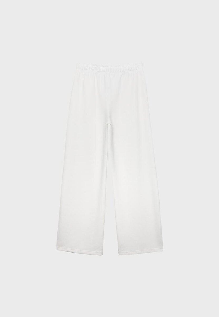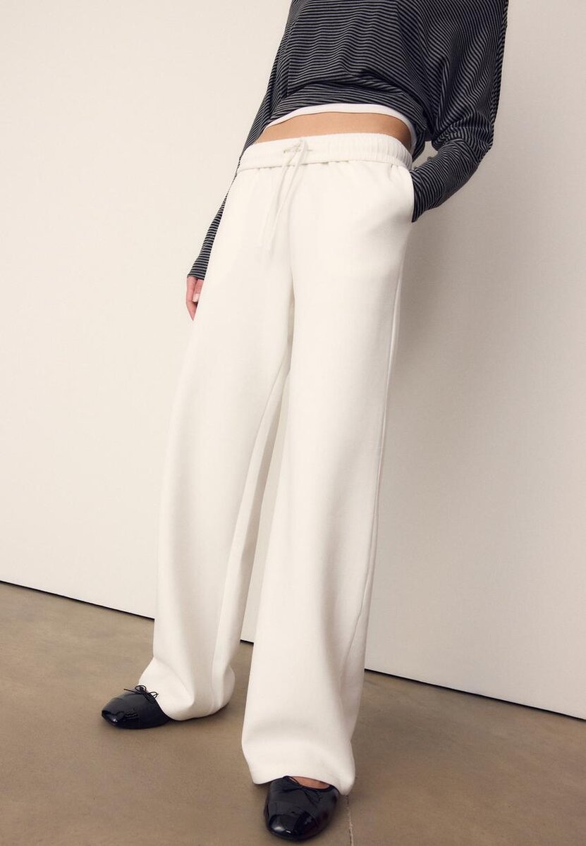 Pantalon de jogging à taille mi-haute avec une ceinture élastiquée et des cordons de serrage internes réglables. Poches latérales. Jambes larges et droites. Disponible dans une gamme de couleurs.