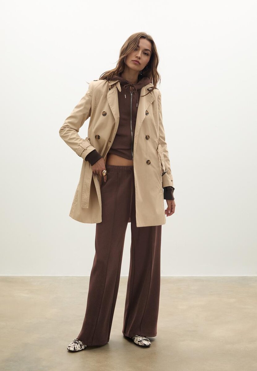 Pantalon de jogging Wide Leg au toucher doux. Taille mi-haute avec ceinture élastiquée et cordons de serrage ton sur ton réglables. Poches latérales. Détail de couture sur le devant. Coupe droite à jambes larges. Disponible en plusieurs couleurs.
