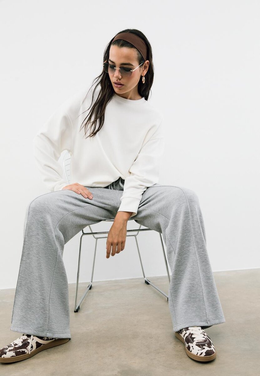 Pantalon de jogging Wide Leg au toucher doux avec détail de couture sur le devant