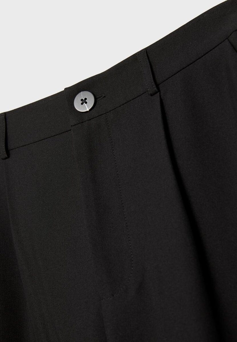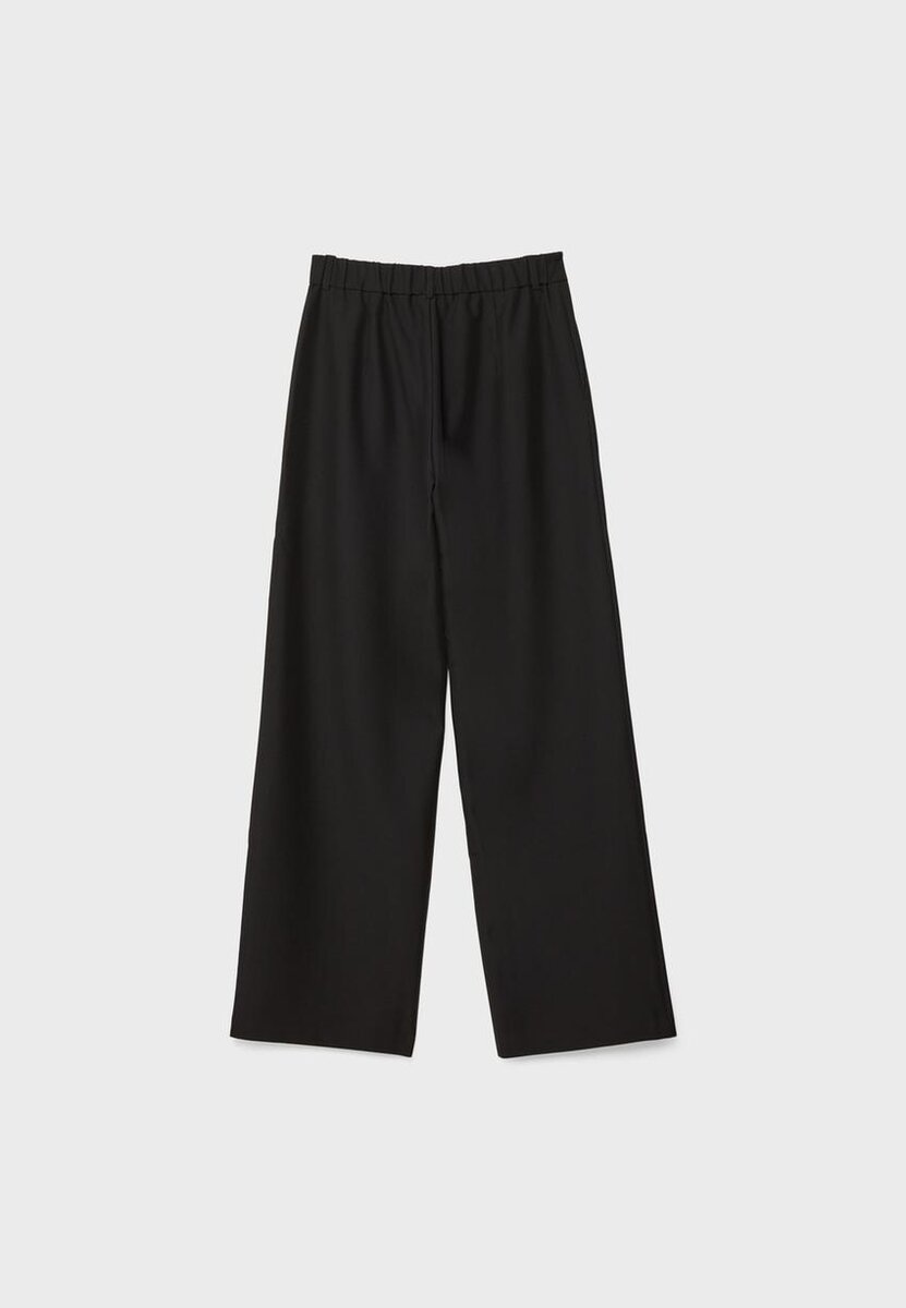 Pantalon droit à taille mi-haute, doté d’une ceinture élastiquée à l’arrière avec passants, de poches latérales, de pinces à l’avant, d’une braguette zippée et d’une fermeture à boutons sur le devant. Disponible en plusieurs couleurs.