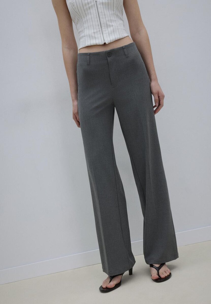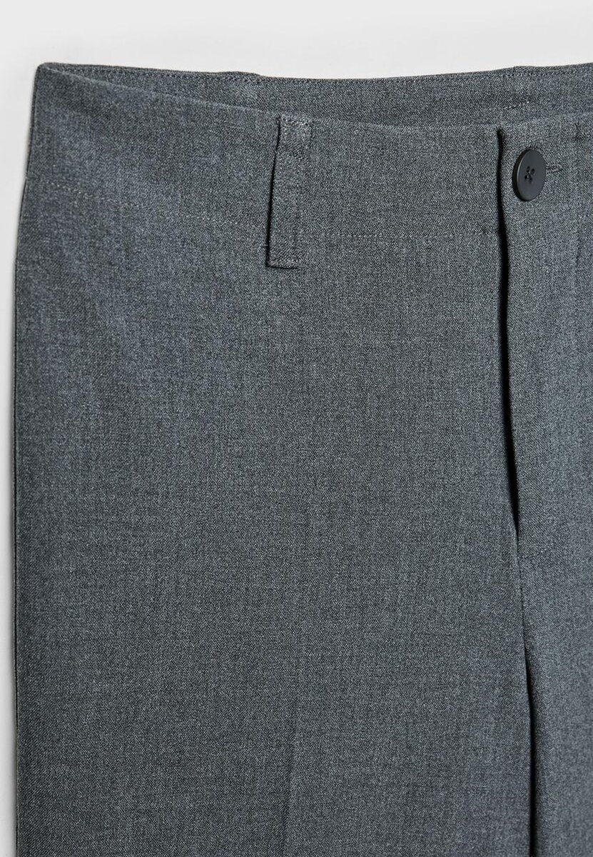 Pantalon habillé en tissu extensible. Taille mi-haute avec passants de ceinture et jambes droites slim fit. Fermeture à glissière et boutons sur le devant. Disponible en plusieurs couleurs.