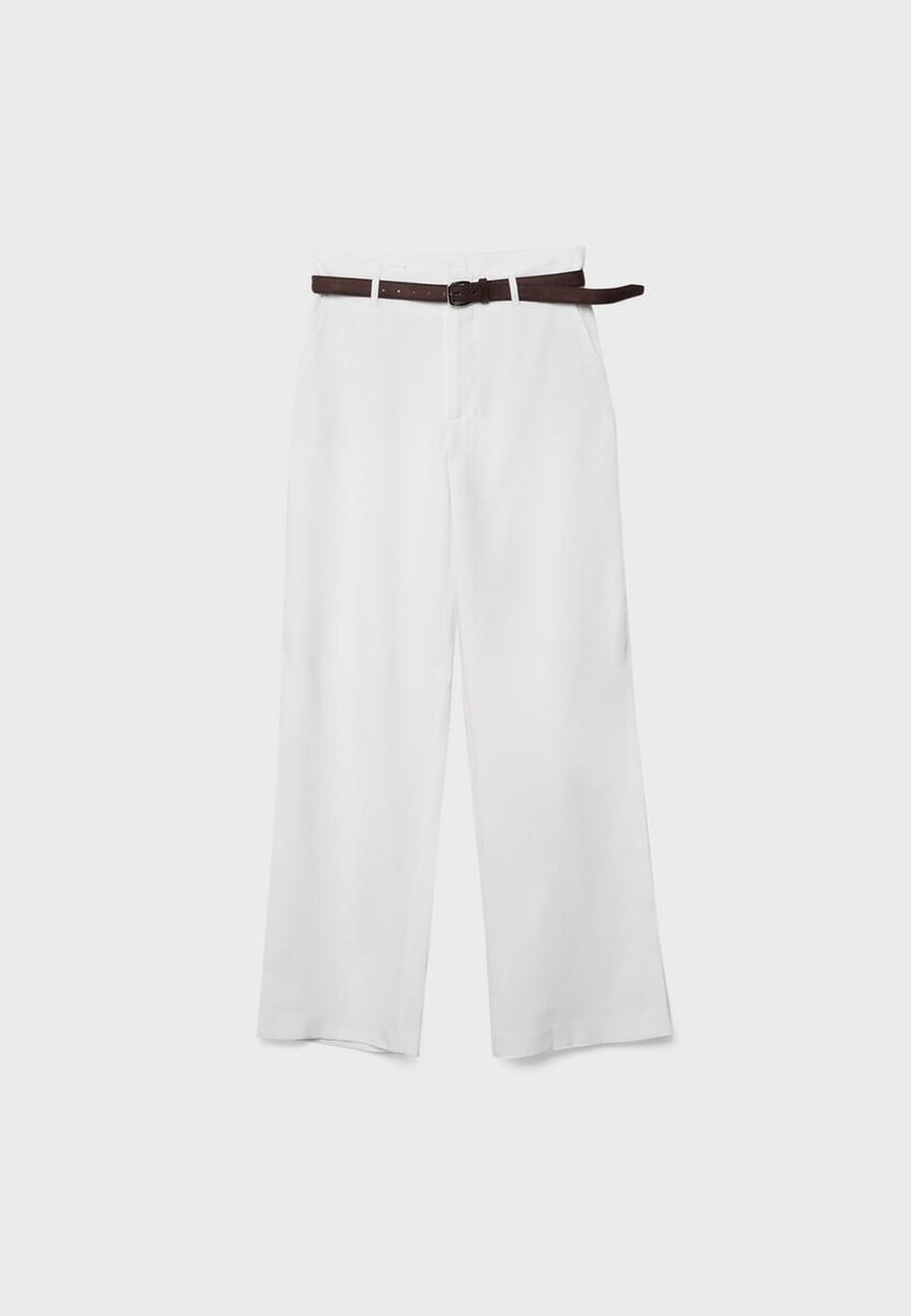 Pantalon fluide à taille haute avec passants de ceinture. Doté de poches avant, de fausses poches passepoilées à l’arrière, d’une coupe droite, d’une ceinture amovible avec boucle et crochet en métal, d’un bouton intérieur et d’une fermeture à glissière à l’avant. Disponible en plusieurs couleurs.
