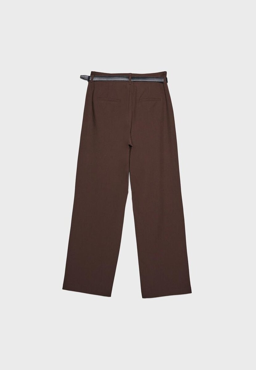 Pantalon fluide à taille haute avec passants de ceinture. Doté de poches avant, de fausses poches passepoilées à l’arrière, d’une coupe à jambes droites, d’une ceinture amovible avec boucle et crochet en métal, d’une fermeture à bouton et à glissière à l’intérieur sur le devant. Disponible en plusieurs couleurs.