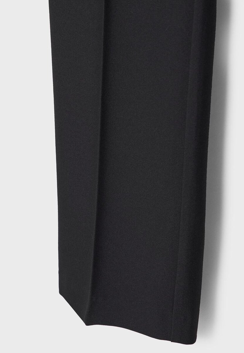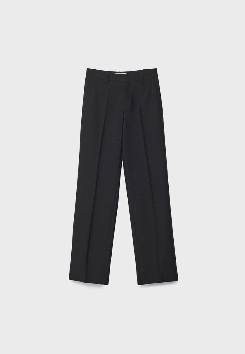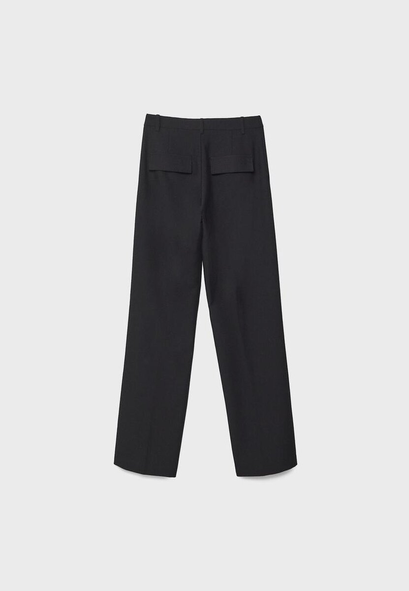 Pantalon taille mi-haute avec poches latérales. Passants de ceinture. Fausse poche à rabat à l’arrière. Coupe droite. Fermeture à glissière sur le devant, bouton intérieur et crochet métallique. Disponible en plusieurs couleurs.