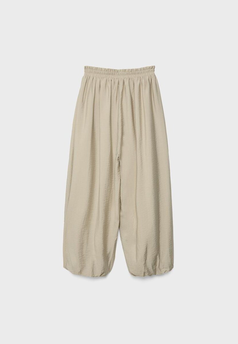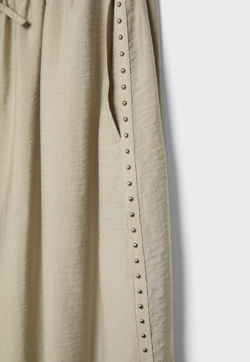 Pantalon sarouel ample avec une taille élastiquée ajustable et un cordon de serrage assorti. Bas élastiqués. Poches latérales. Détails clous.