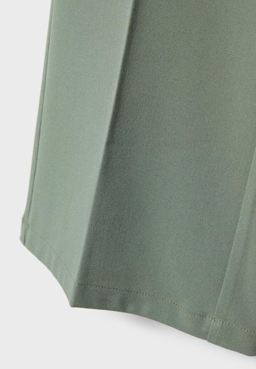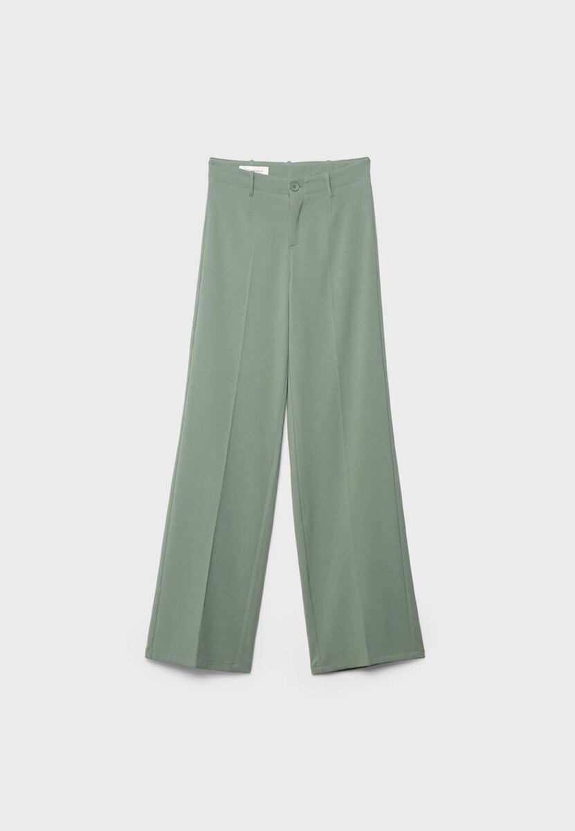 Pantalon taille mi-haute avec passants de ceinture. Coupe large et droite. Fermeture à glissière et boutons sur le devant.