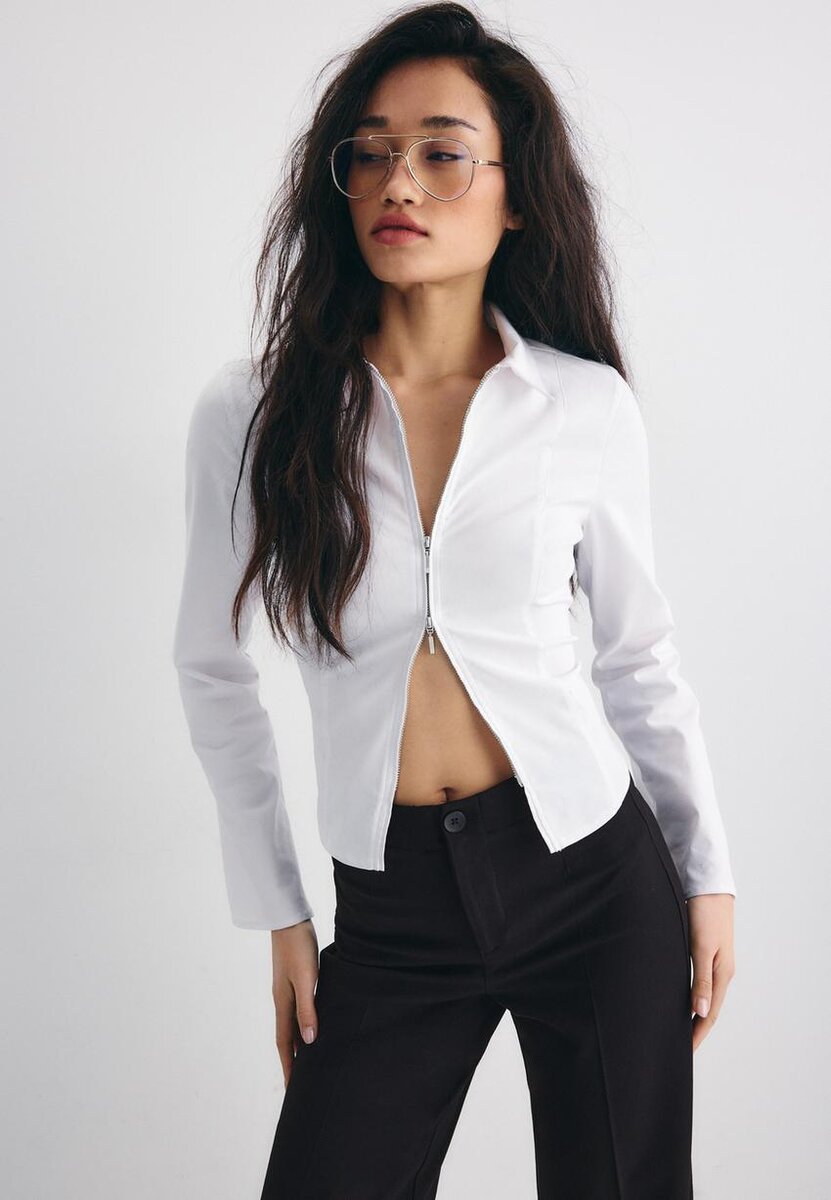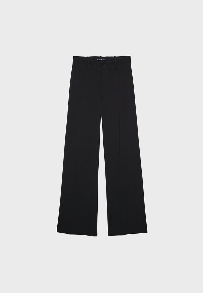 Pantalon taille moyenne avec passants de ceinture. Jambes larges et droites. Fermeture à glissière et boutons sur le devant. Disponible en plusieurs couleurs.