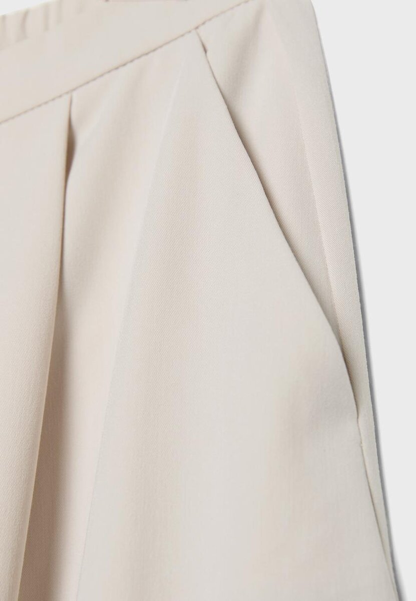 Pantalon taille moyenne à jambes Wide Leg, ourlets élastiqués et ceinture élastiquée à l’arrière. Poches latérales. Fermeture à glissière et boutons sur le devant. Pince sur le devant. Disponible en plusieurs couleurs.