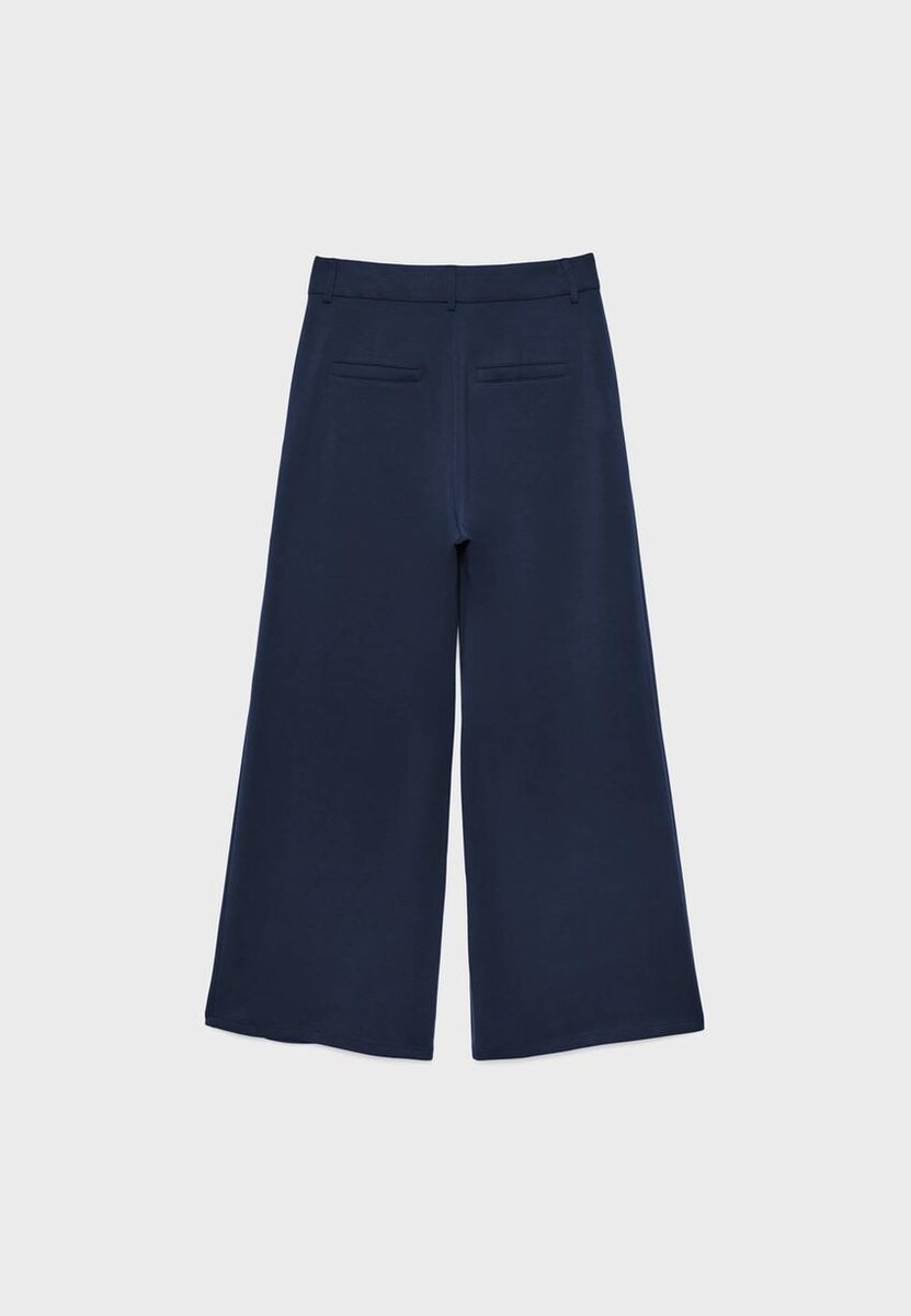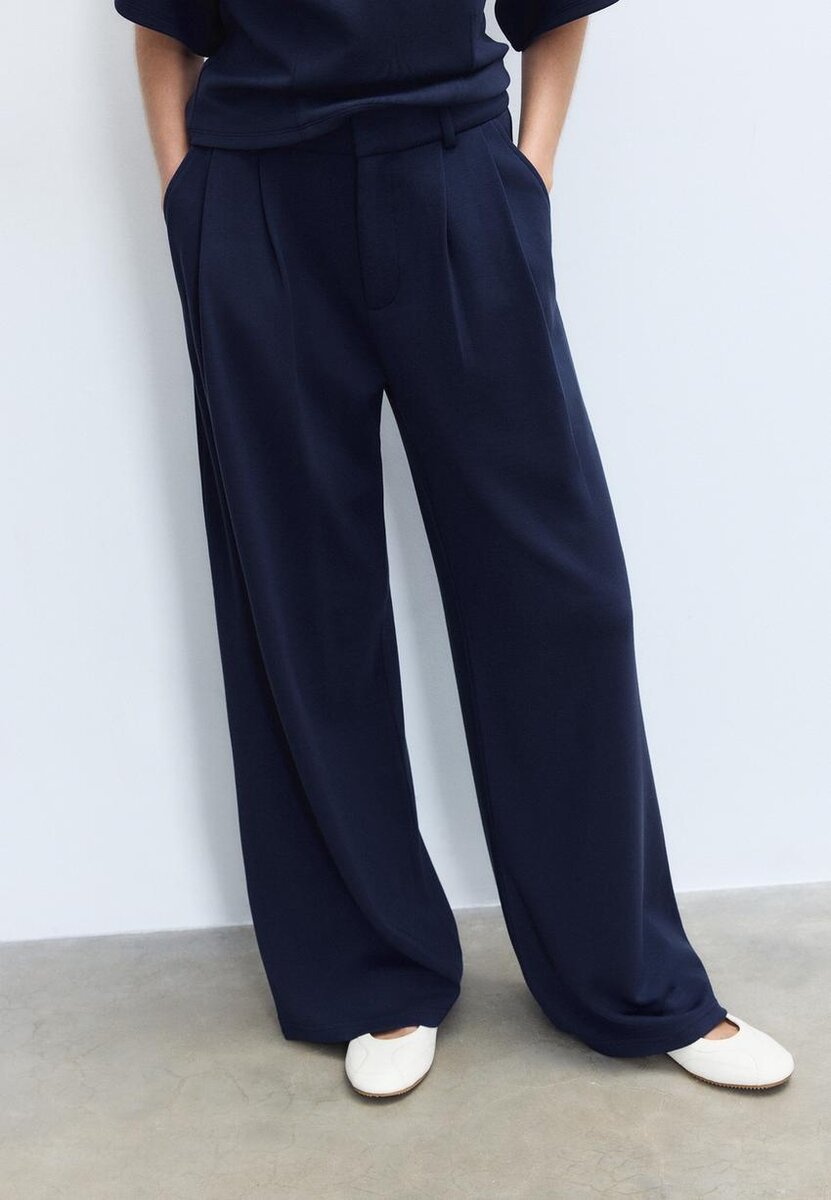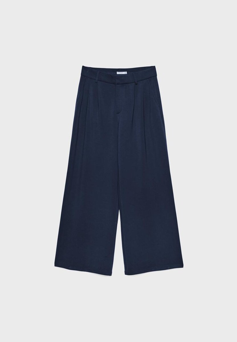 Pantalon au toucher doux. Taille mi-haute avec passants de ceinture. Poches latérales. Plis décoratifs sur le devant. Jambe droite et fluide. Fermeture à glissière sur le devant avec bouton intérieur et crochet métallique. Disponible en plusieurs couleurs.