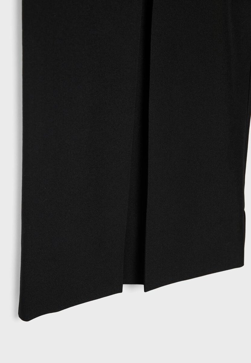 Pantalon élégant avec large ceinture et passants. Coupe droite et Wide Leg. Poches latérales. Avec pinces sur le devant.