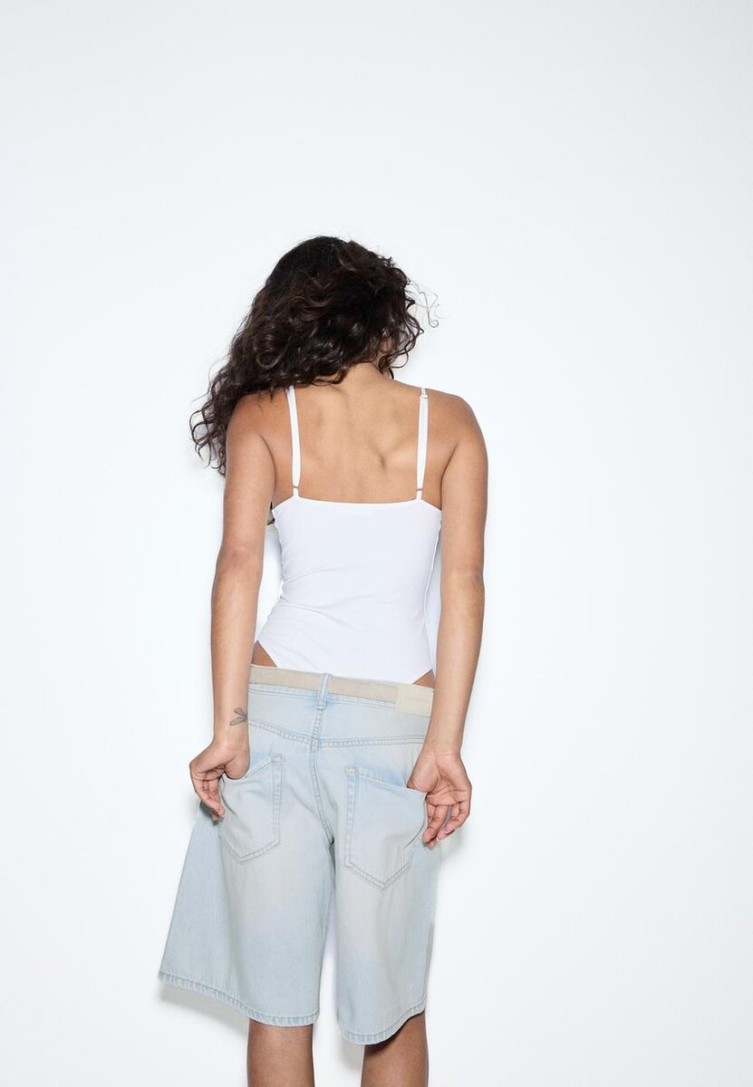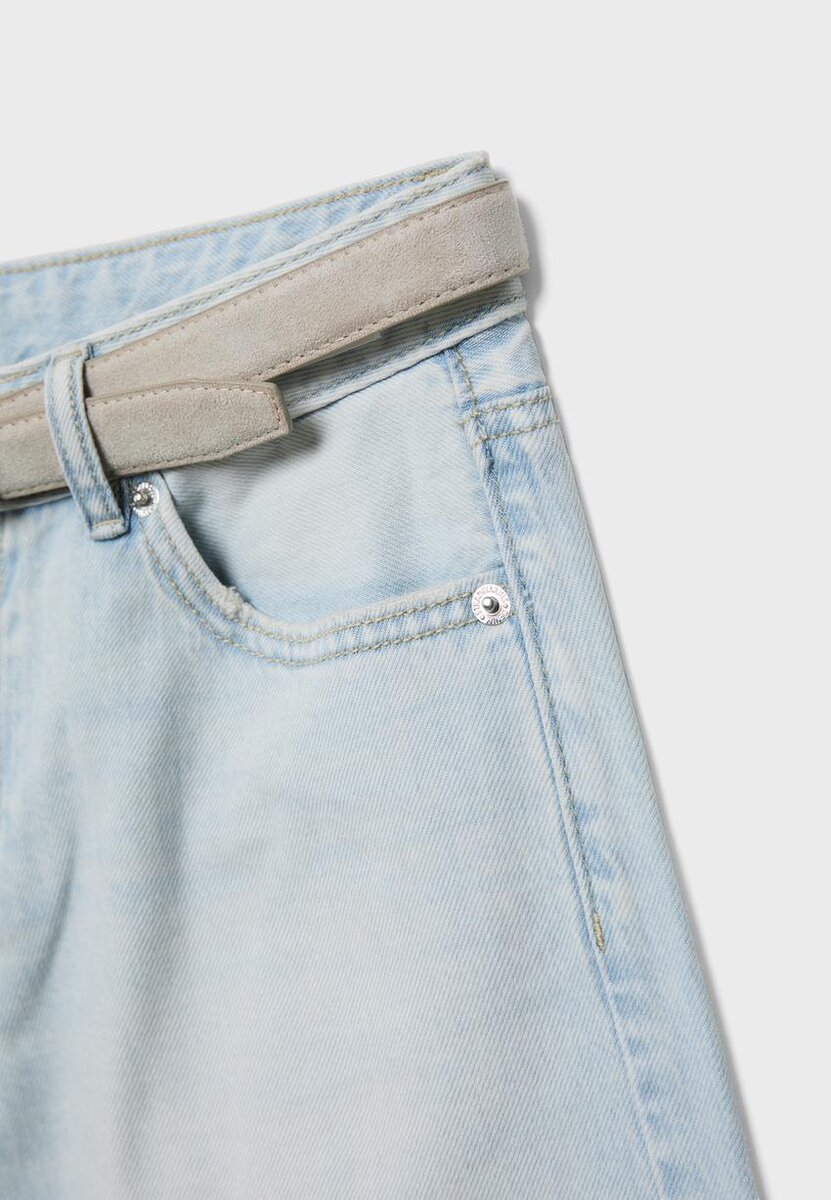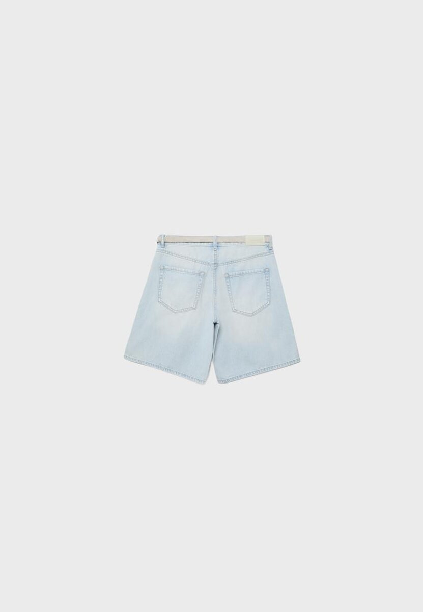 Bermuda en denim taille haute à jambes droites. Doté de passants de ceinture et d’un design à cinq poches. Ceinture amovible contrastée. Disponible en plusieurs couleurs.
