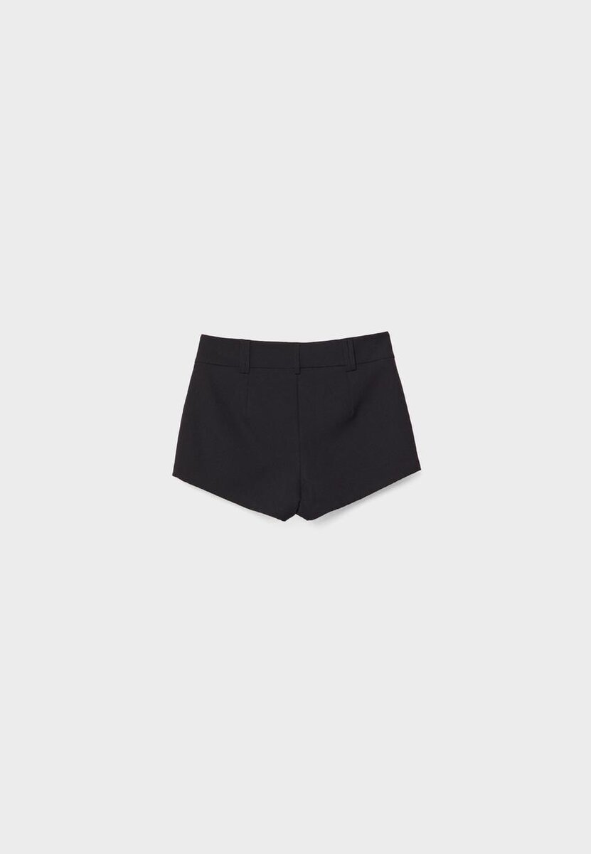Mini-short taille moyenne avec passants de ceinture et fermeture croisée à glissière et boutons sur le devant.