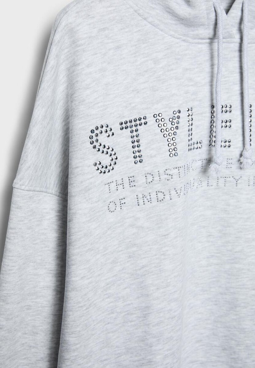 Sweat à capuche avec cordon de serrage réglable. Manches longues avec poignets et ourlet côtelés. Motif imprimé à strass sur le devant.