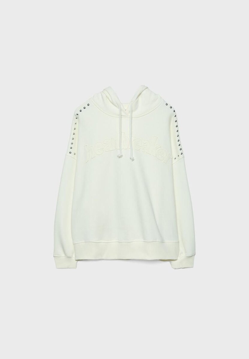 Sweat à capuche avec cordon de serrage réglable. Manches longues. Bordures côtelées. Clous sur l’épaule et broderie sur le devant.