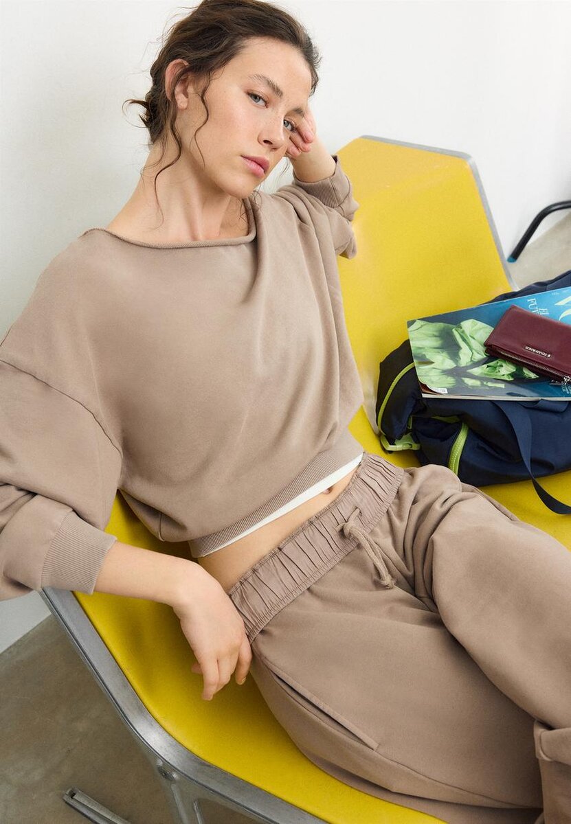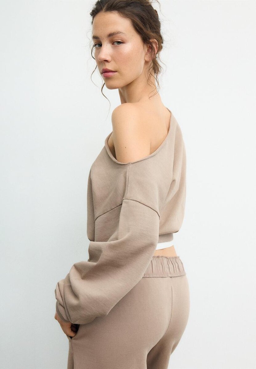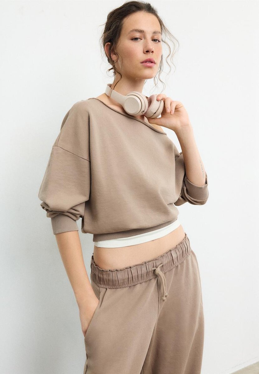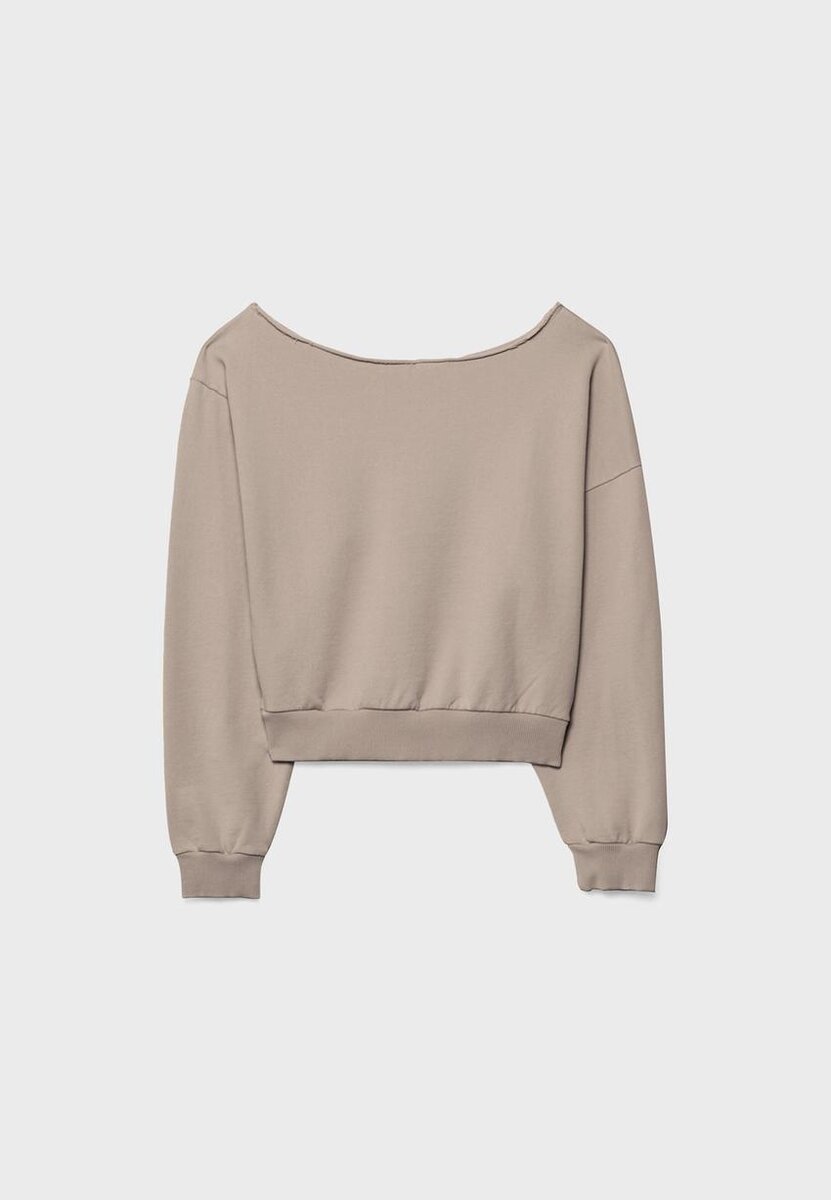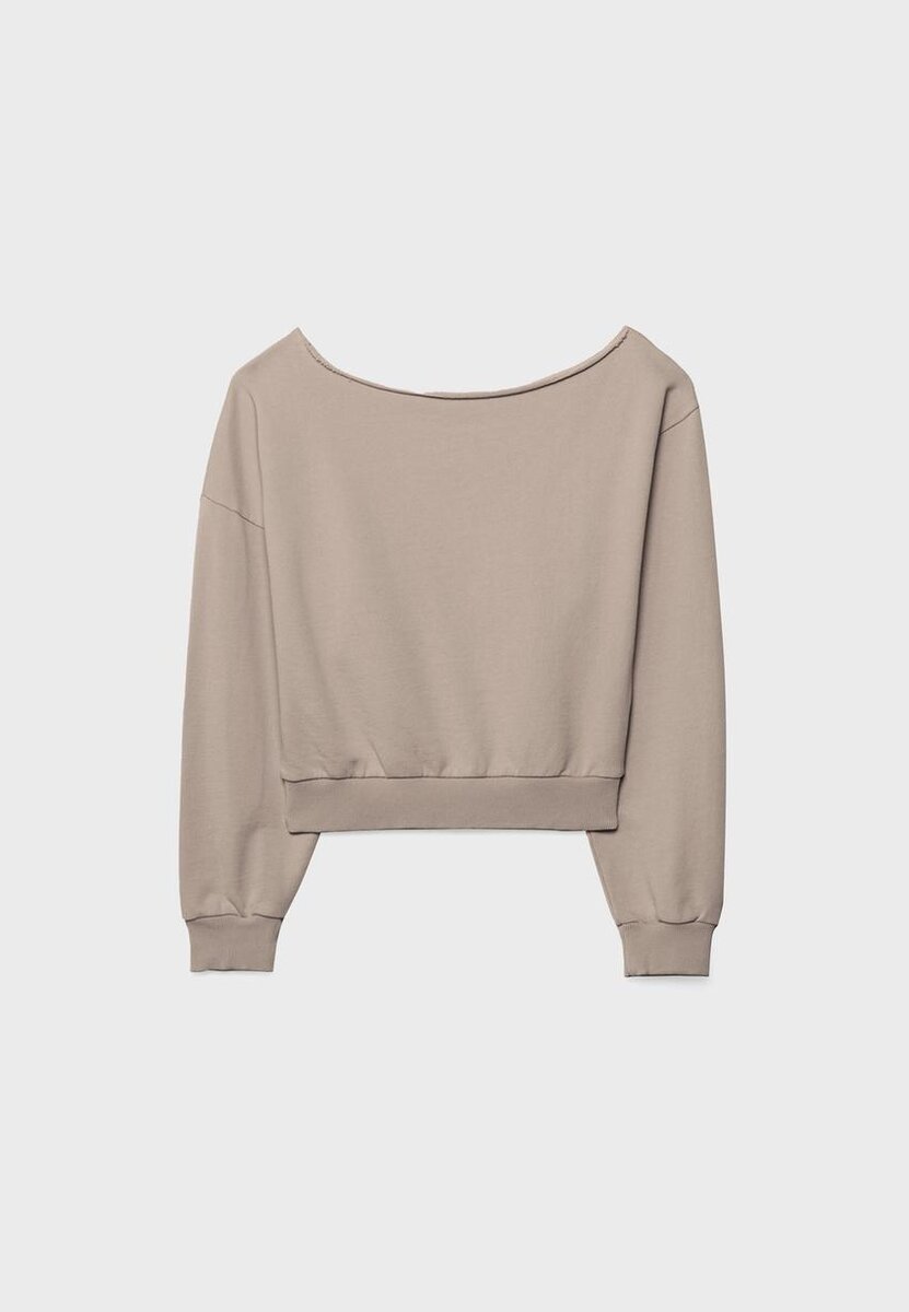 Sweat-shirt court à col bateau et manches longues. Bords-côtes. Disponible en plusieurs couleurs.
