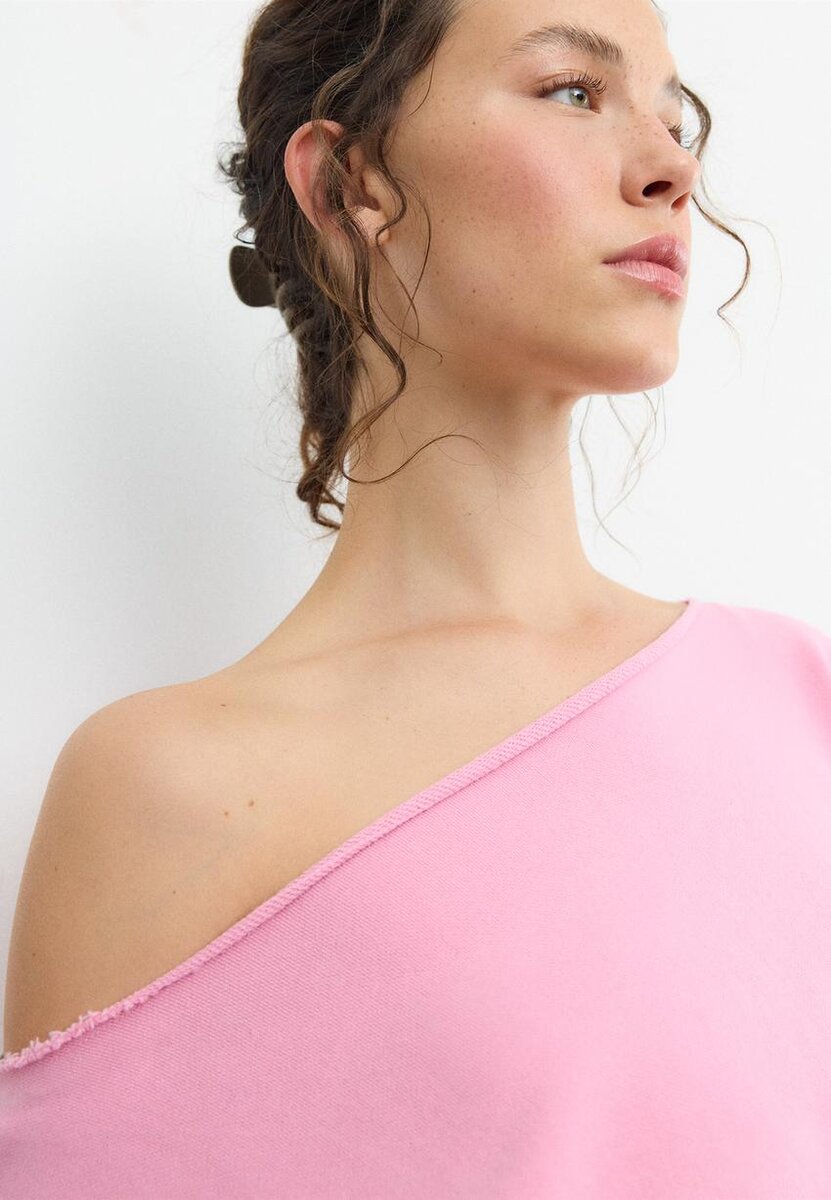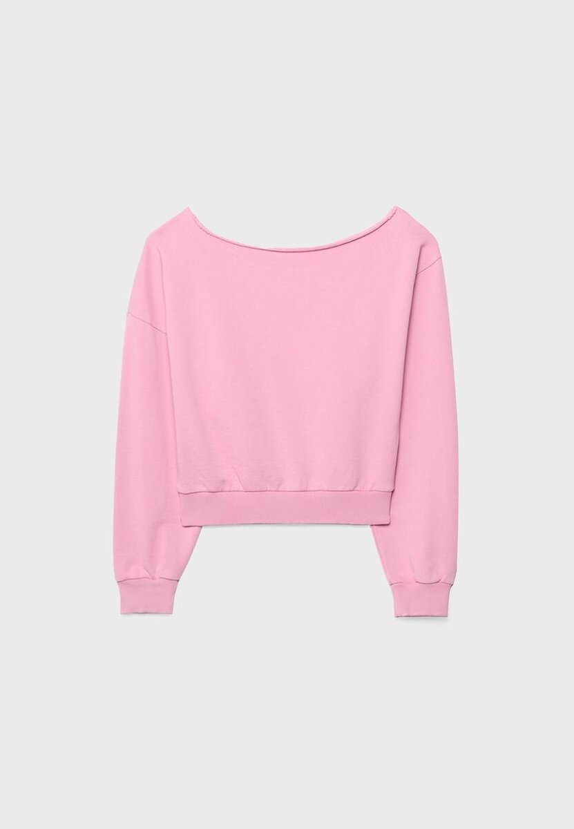 Sweat-shirt court à col bateau et manches longues. Bords-côtes. Disponible en plusieurs couleurs.