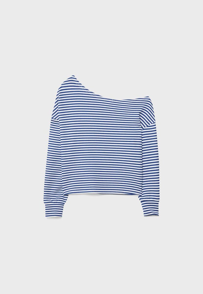 Sweat doux et fluide. Encolure asymétrique avec design à épaules dénudées et manches longues. Disponible en plusieurs couleurs.