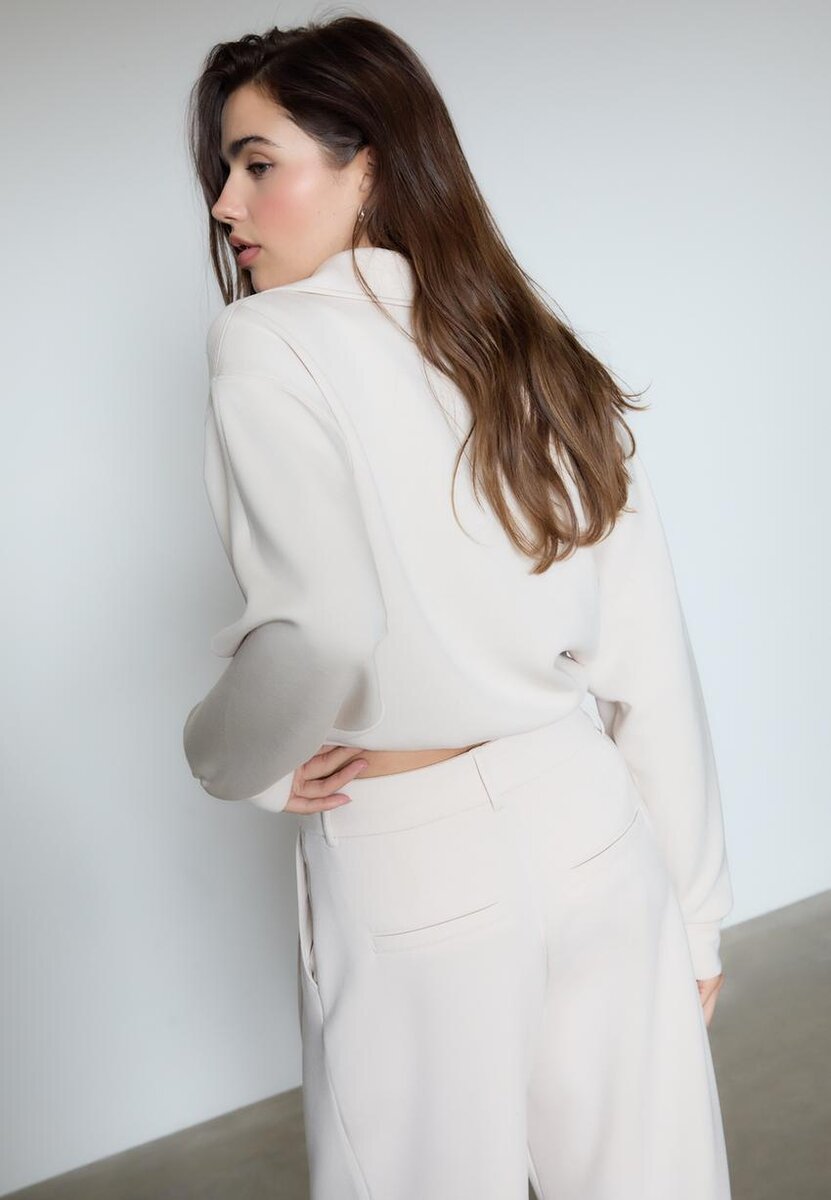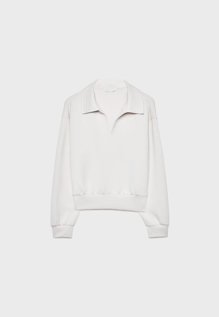 Sweat-shirt Toucher doux. Col à revers et encolure en V, manches longues et poignets élastiques. Disponible en plusieurs couleurs.