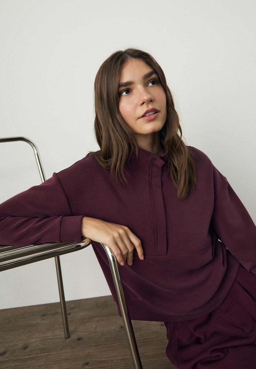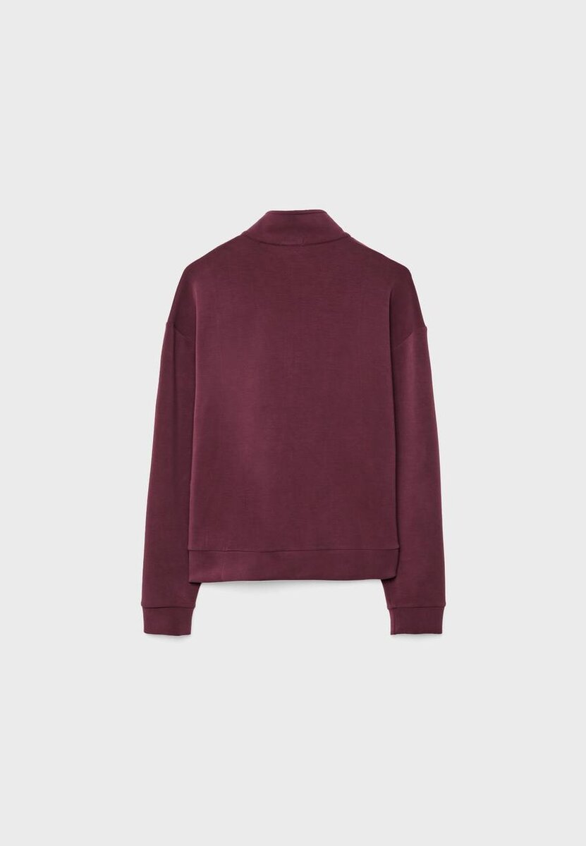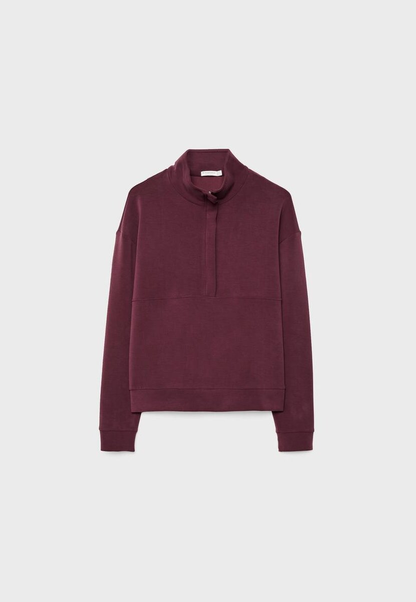 Sweat-shirt fluide au toucher doux. Col montant avec fermeture éclair dissimulée par une patte de boutonnage et manches longues. Disponible en plusieurs couleurs.