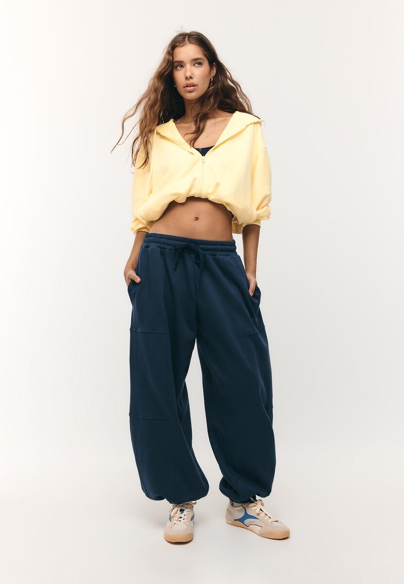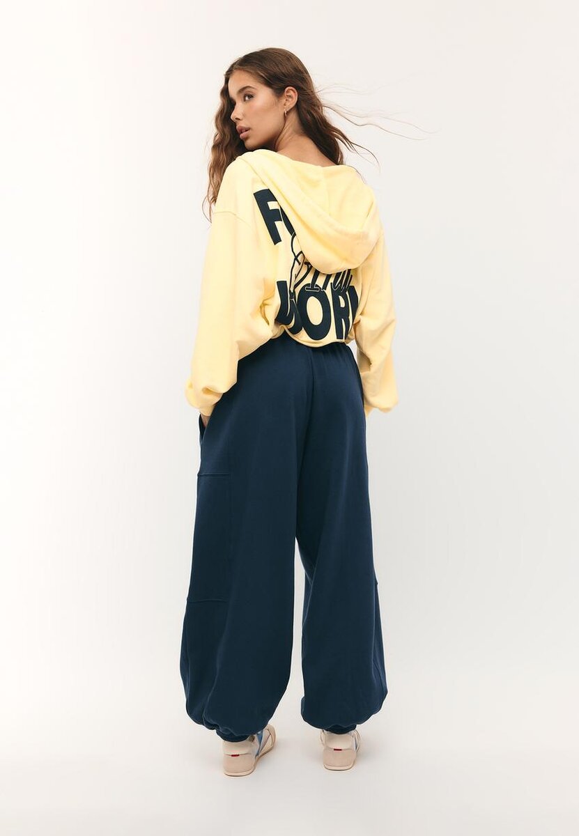 Sweat-shirt style bomber avec capuche à cordon de serrage réglable. Manches longues avec poignets côtelés. Fermeture à glissière sur le devant. Ourlet côtelé. Imprimé dans le dos.