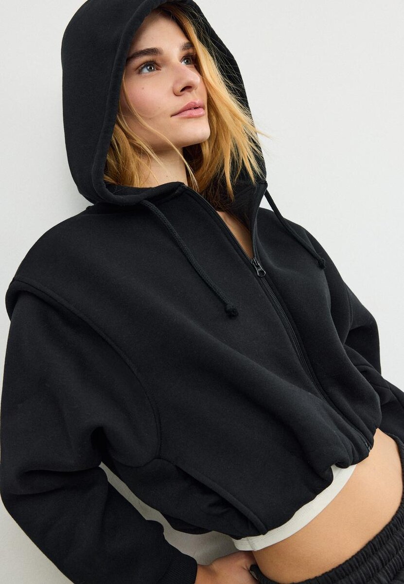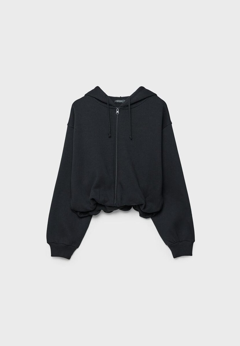 Sweats style bomber avec capuche à cordon de serrage réglable. Manches longues avec poignets côtelés. Fermeture à glissière sur le devant. Ourlet côtelé. Motif imprimé dans le dos. Disponible en plusieurs couleurs.