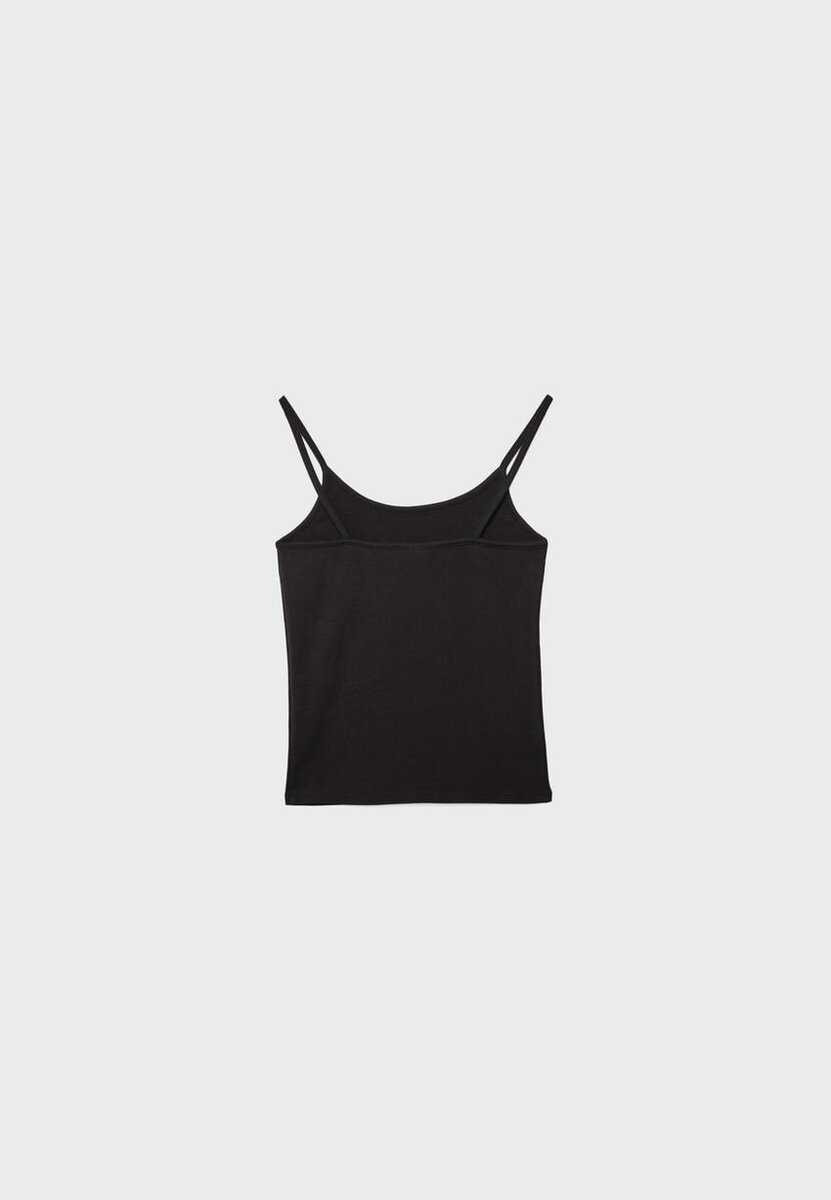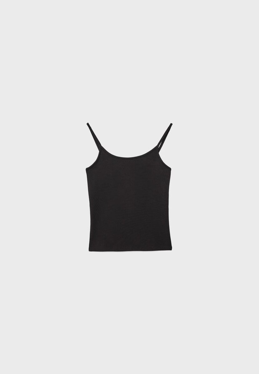 Haut en mélange de coton. Coupe ajustée. Encolure ronde et bretelles. Détail texturé côtelé. Disponible en plusieurs couleurs.