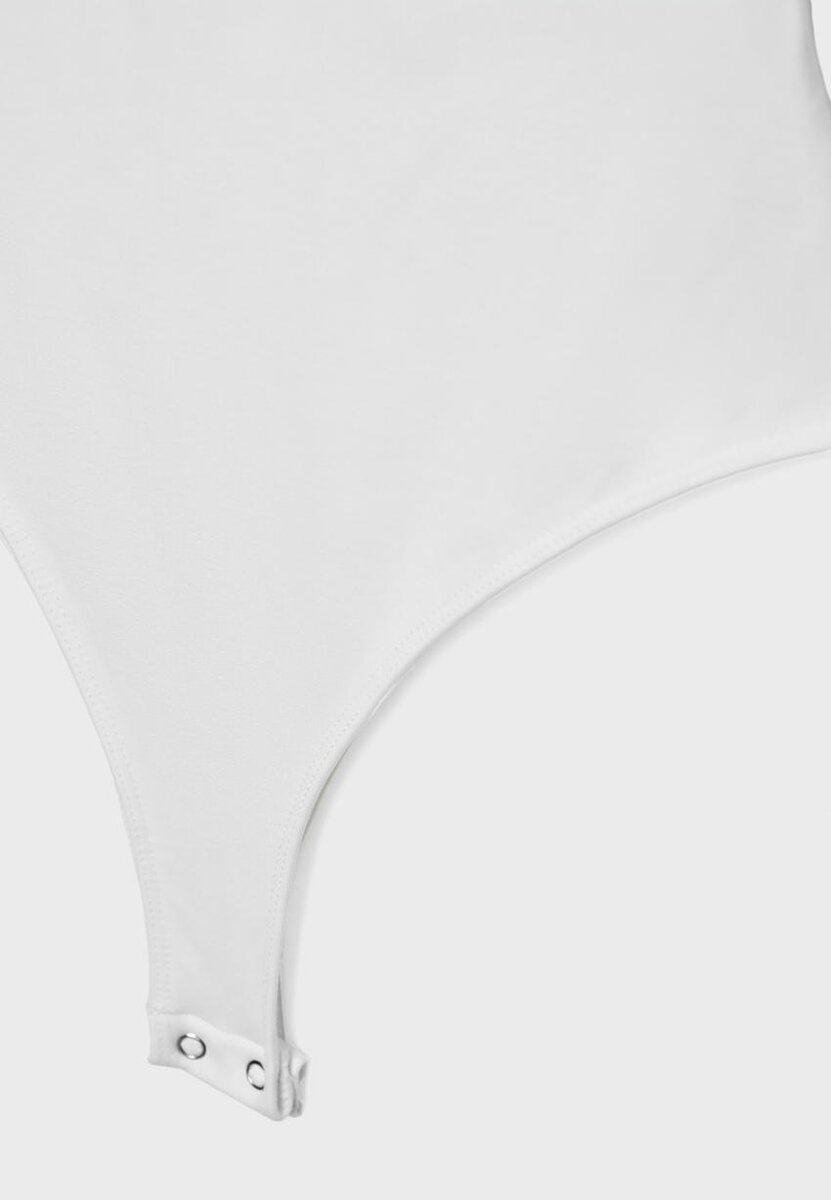 Body ajusté à col en V et fines bretelles. Fermeture à boutons-pression au bas.