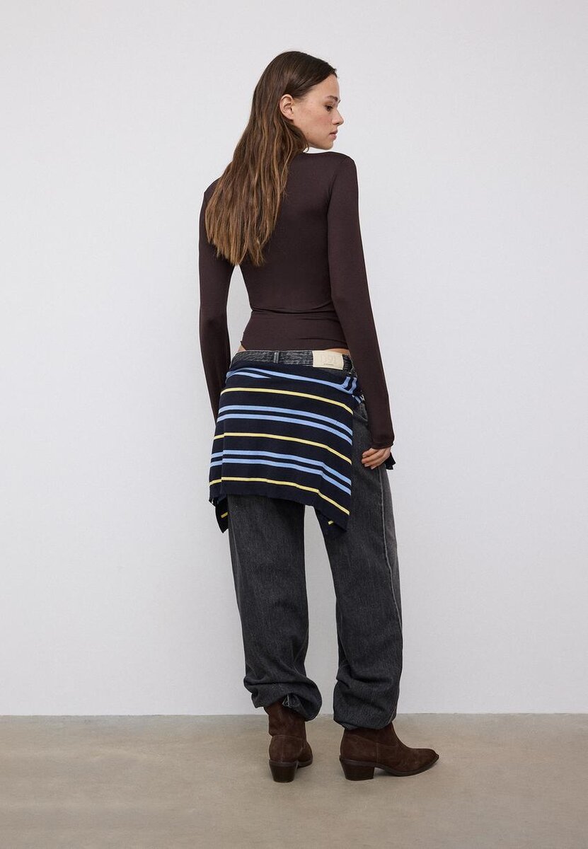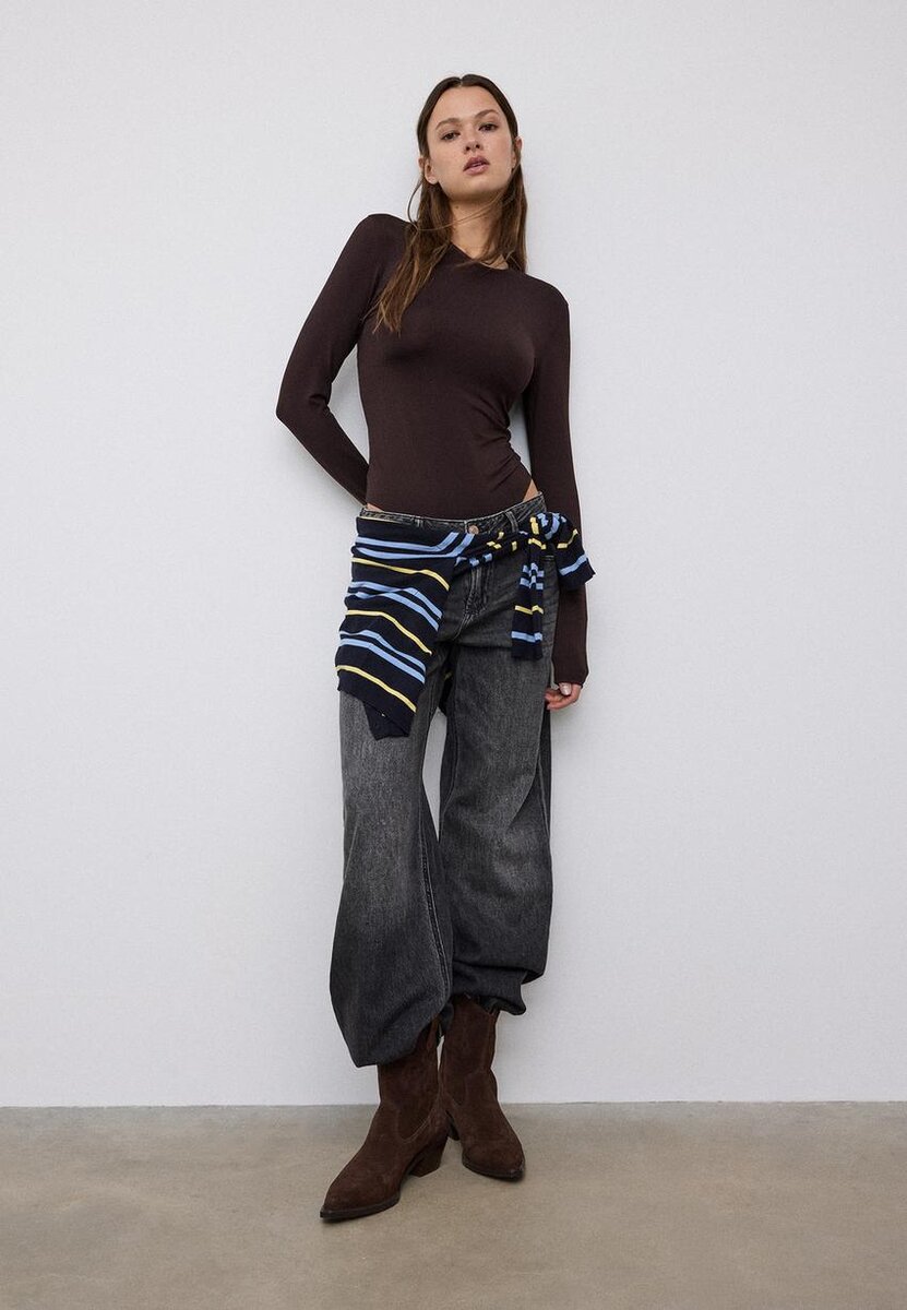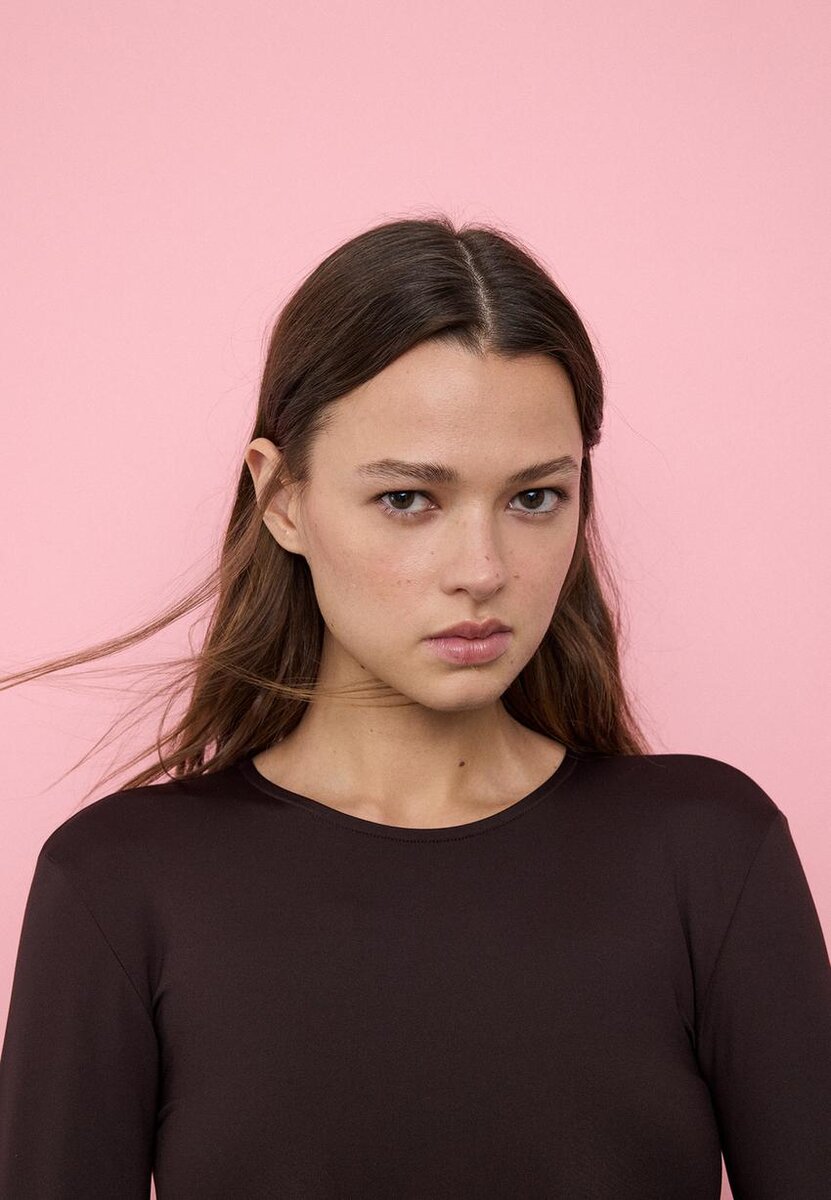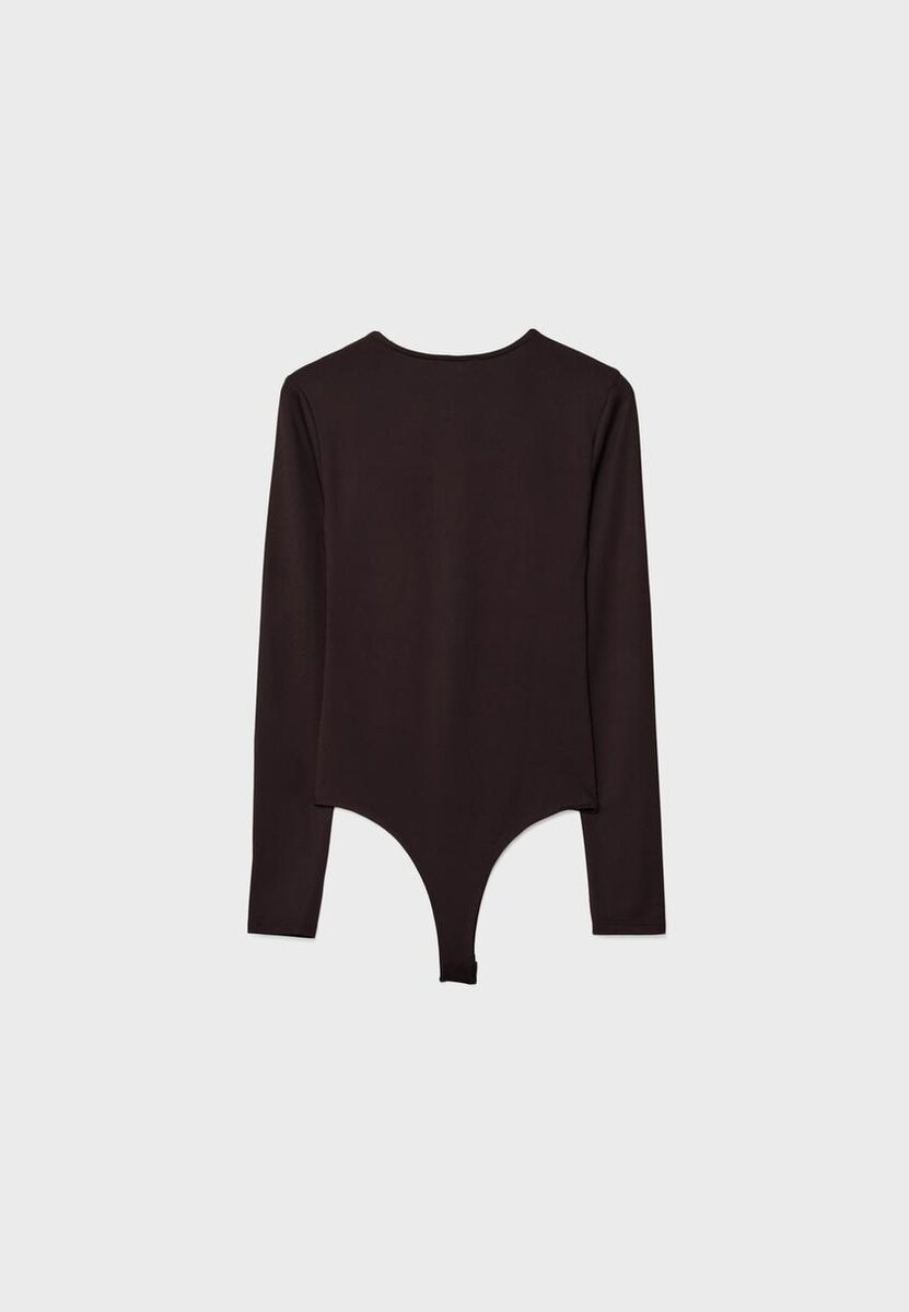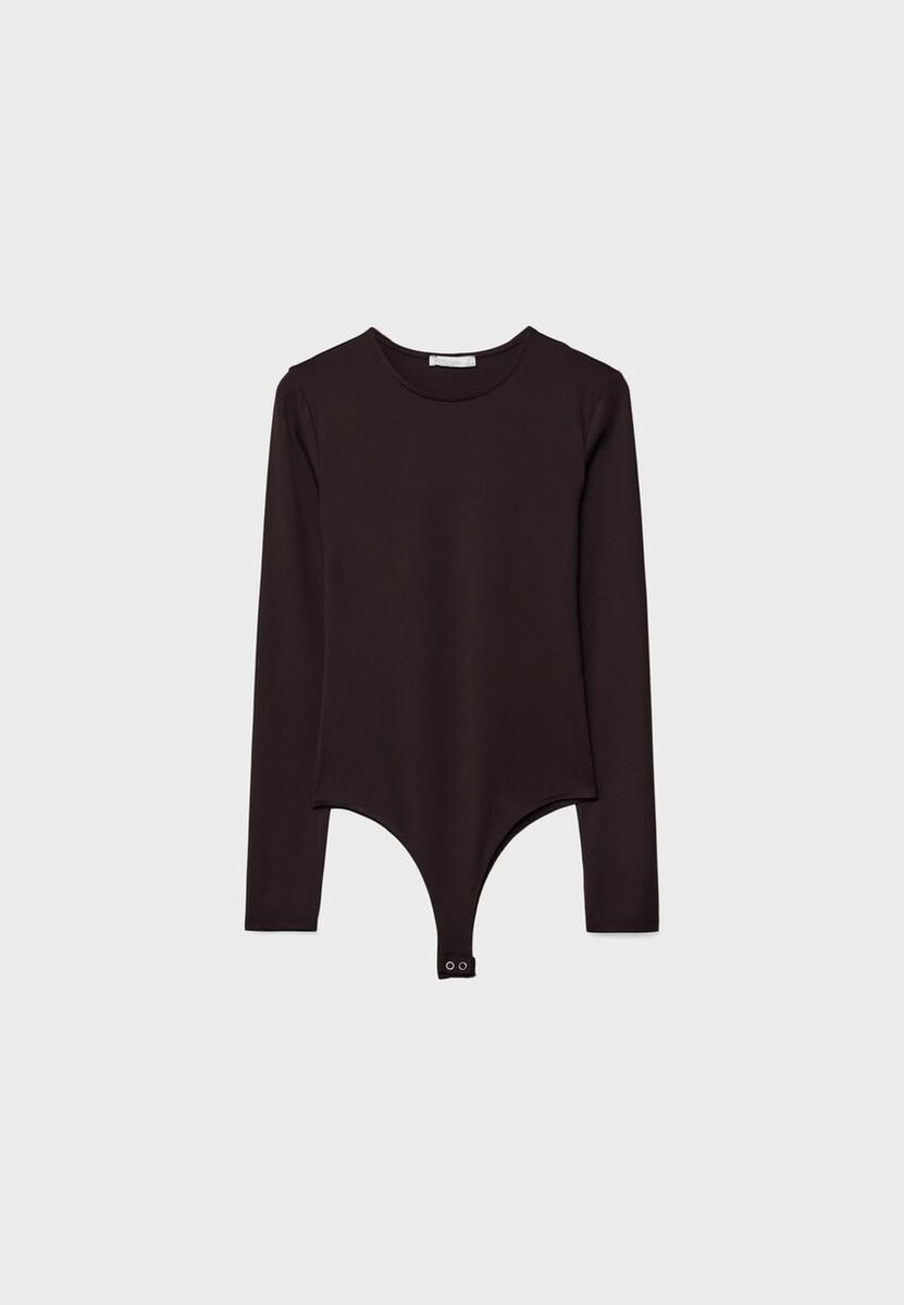 Body ajusté en mélange de polyamide, col rond et manches longues. Fermeture à boutons-pression. Disponible en plusieurs couleurs.