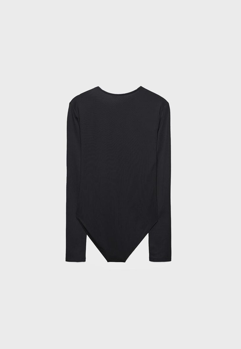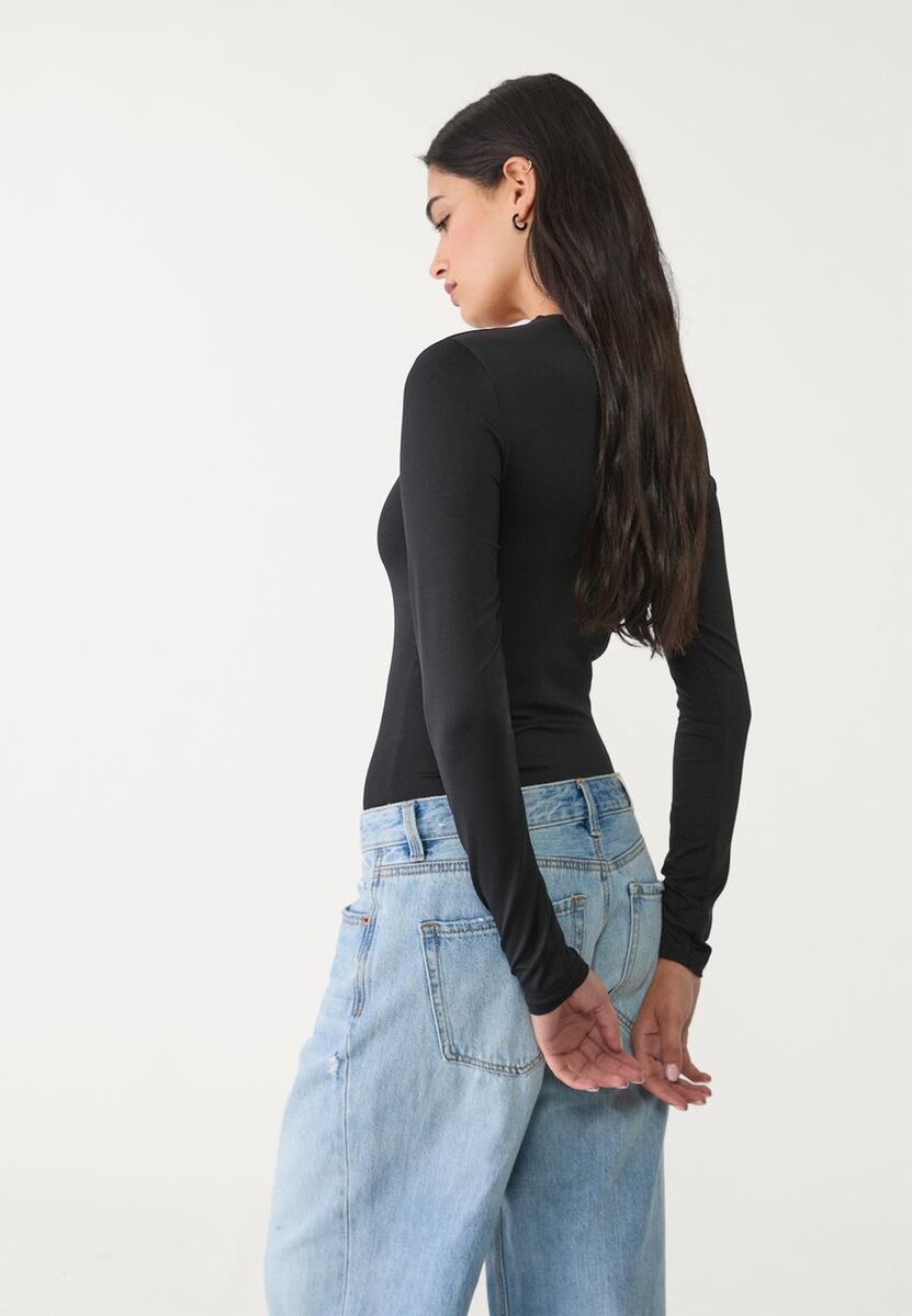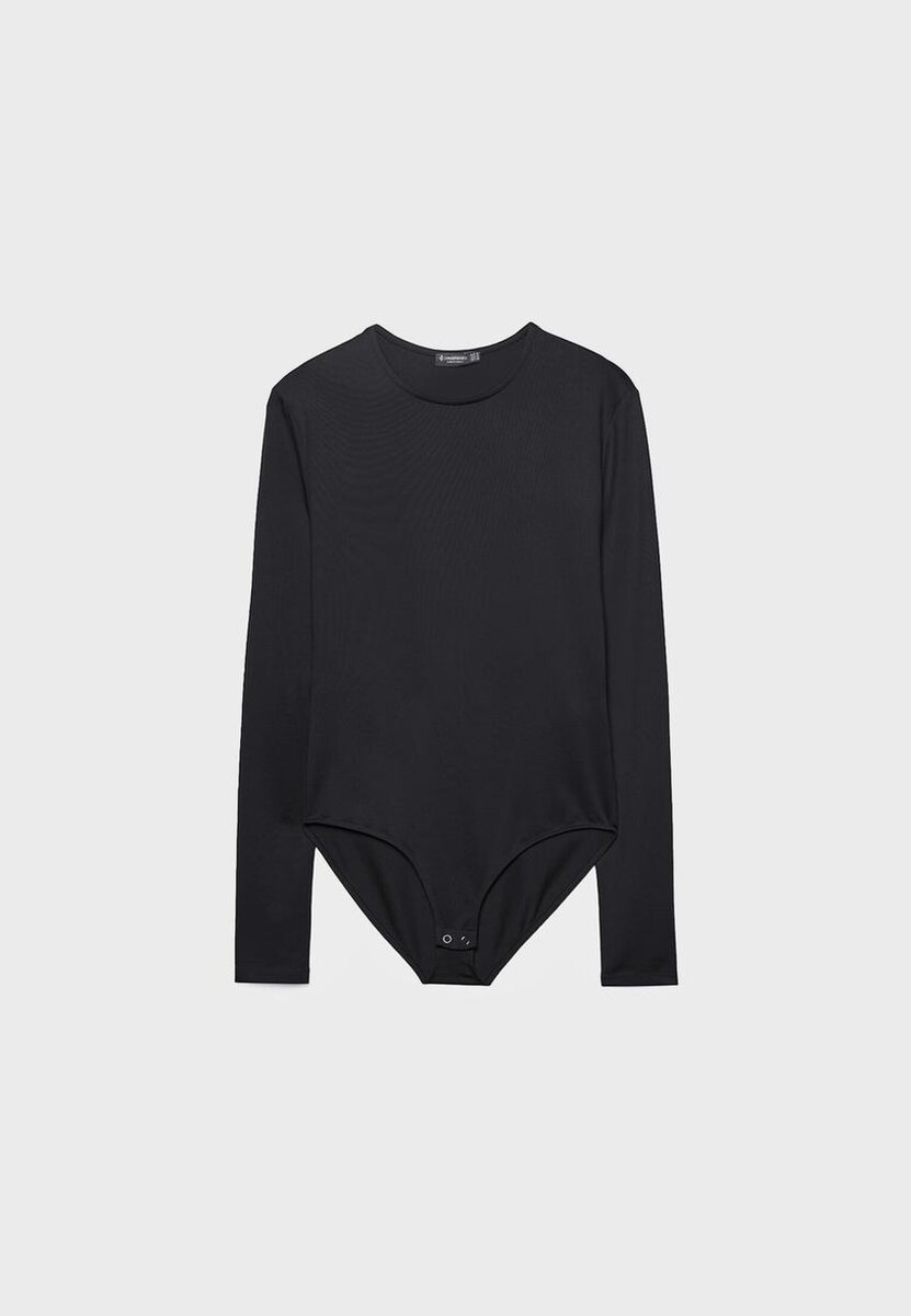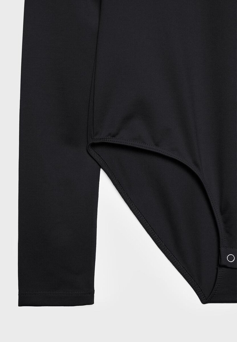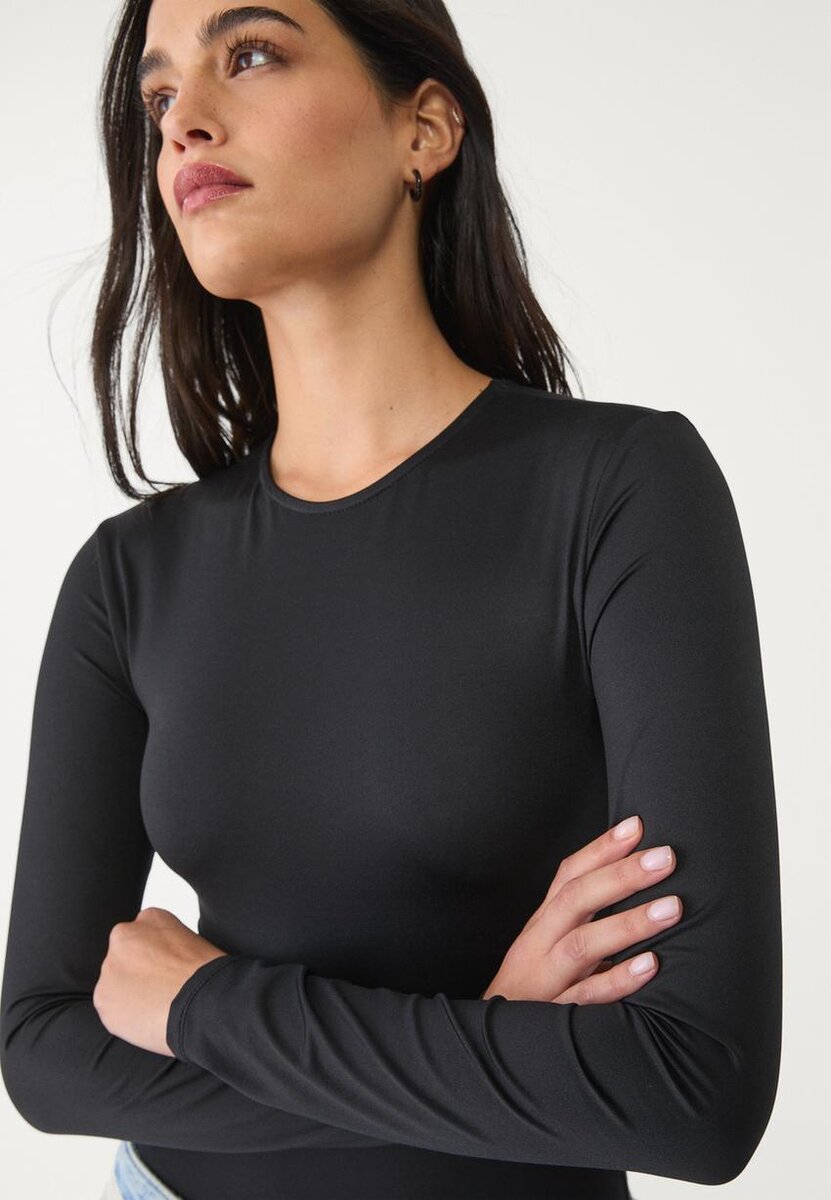 Body ajusté en mélange de polyamide, col rond et manches longues. Fermeture à boutons-pression. Disponible en plusieurs couleurs.
