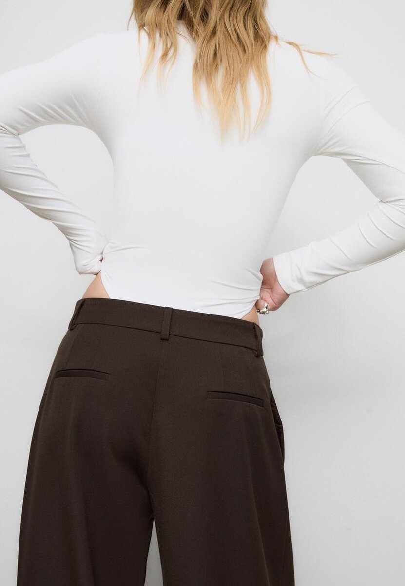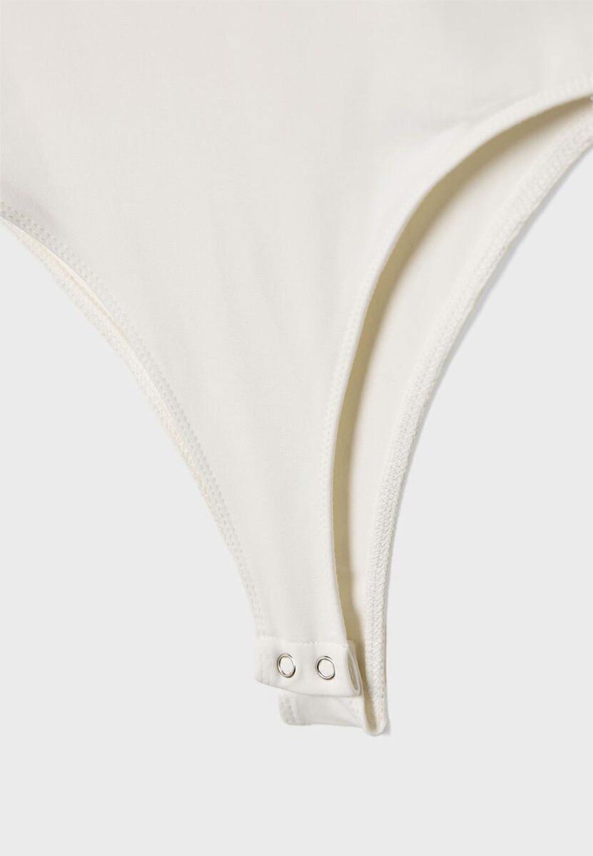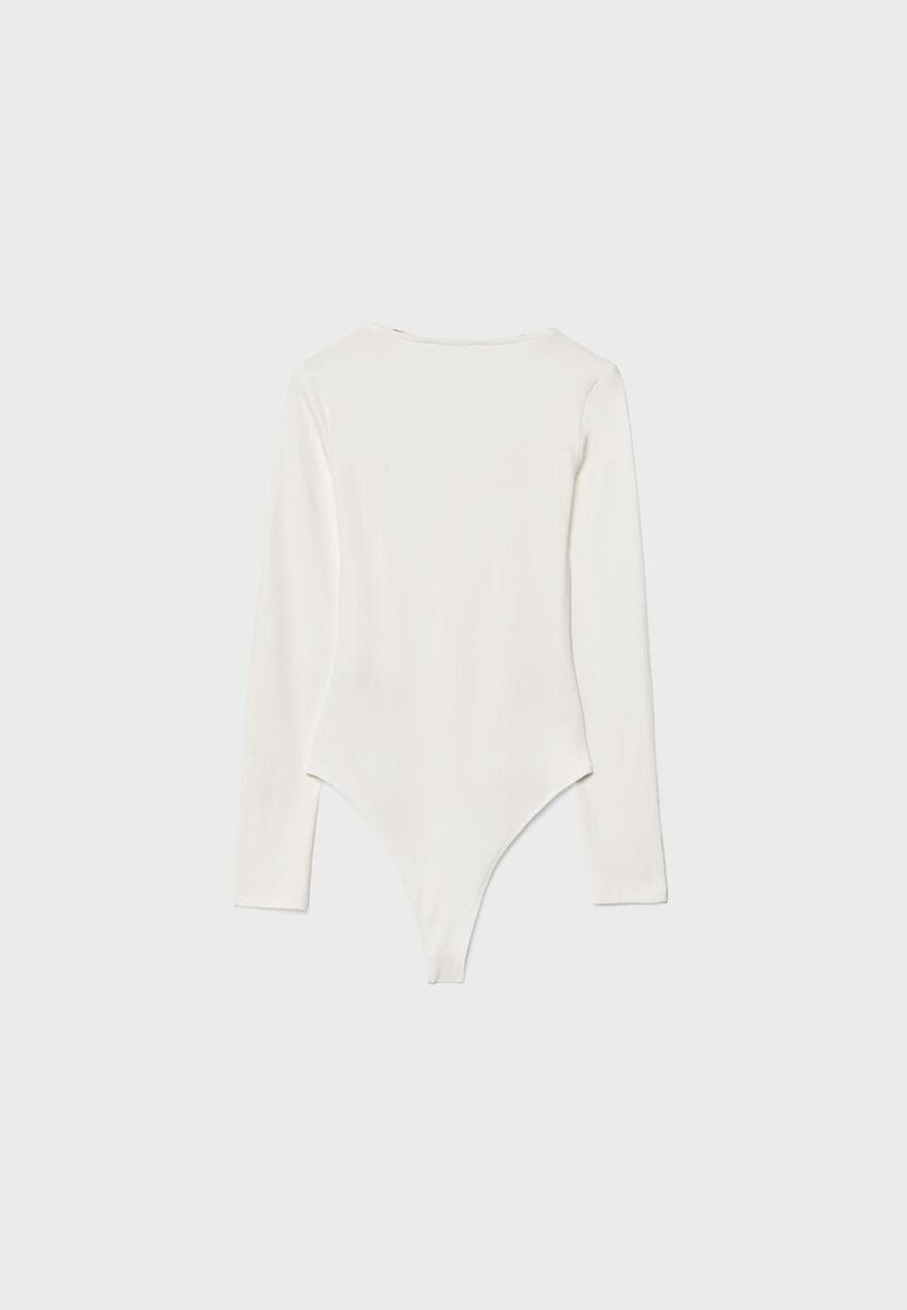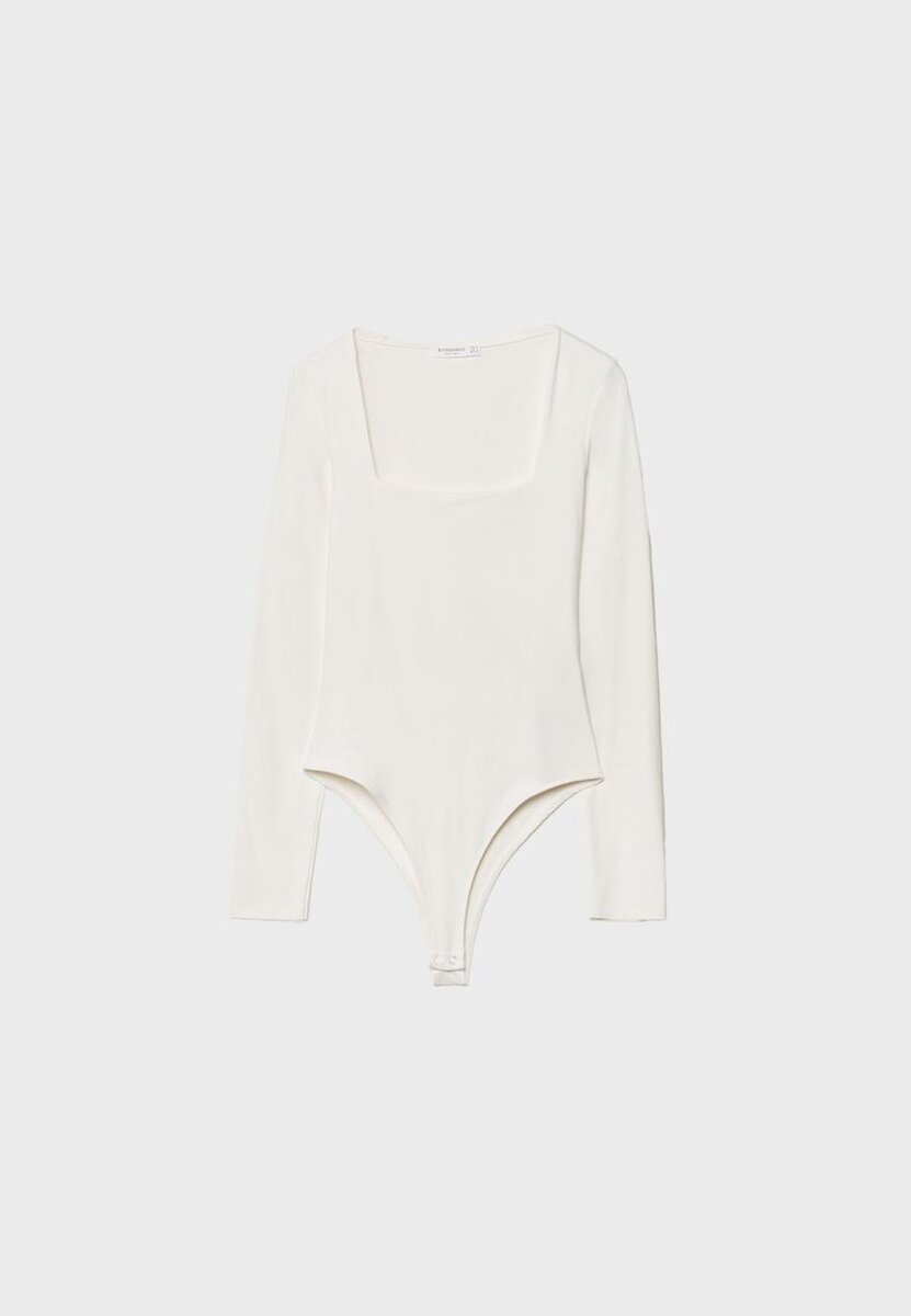 Body basique ajusté à encolure carrée et manches longues. Fermeture à boutons-pression au bas. Disponible en plusieurs couleurs.