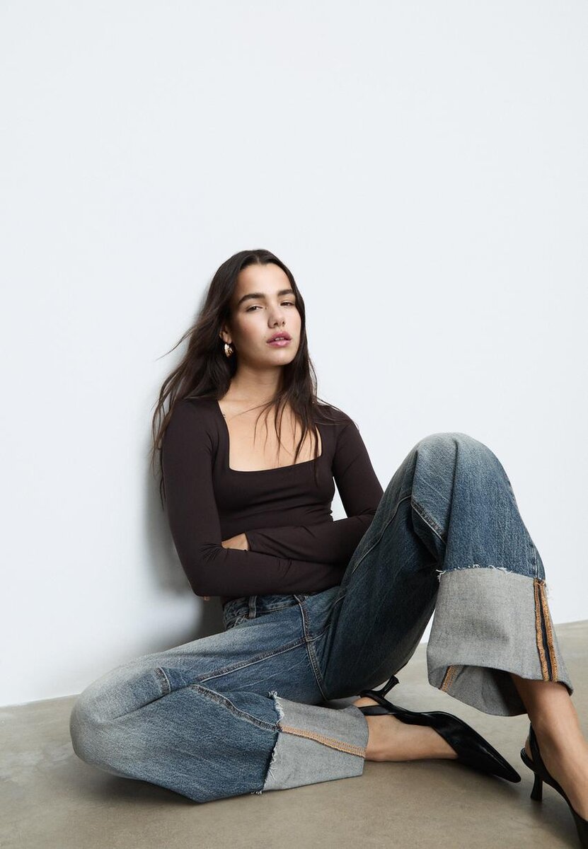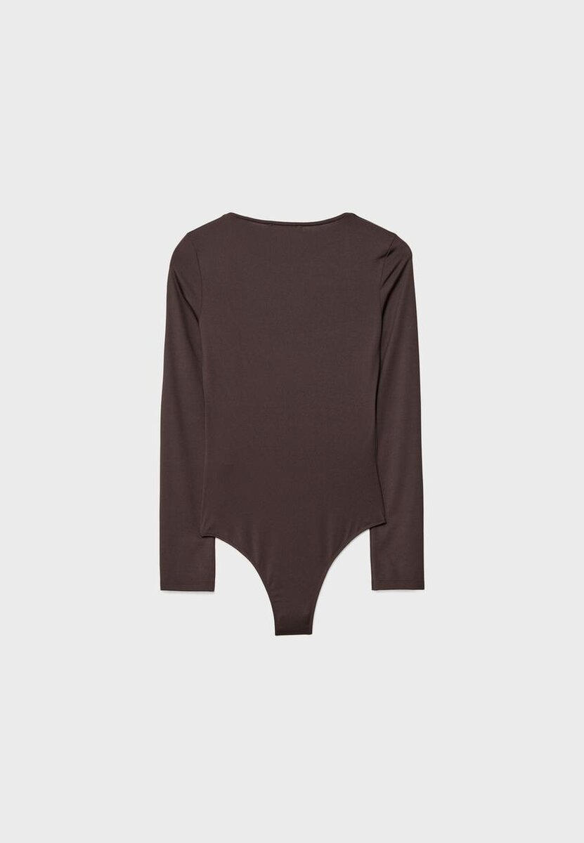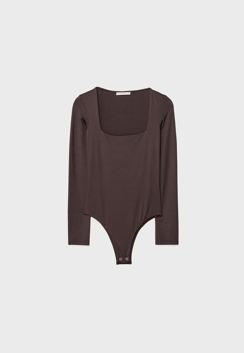 Body basique ajusté à encolure carrée et manches longues. Fermeture à boutons-pression au bas. Disponible en plusieurs couleurs.