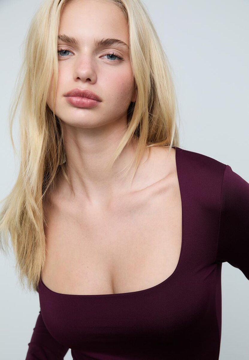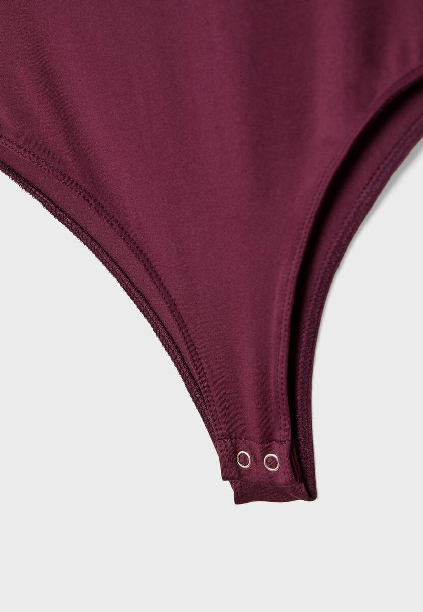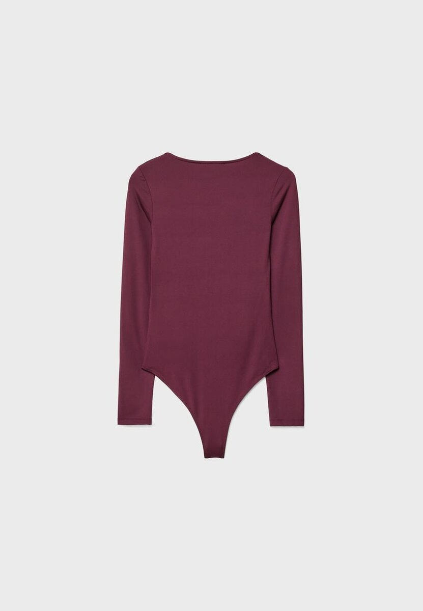 Body basique ajusté à encolure carrée et manches longues. Fermeture à boutons-pression au bas. Disponible en plusieurs couleurs.