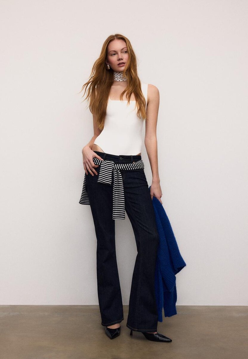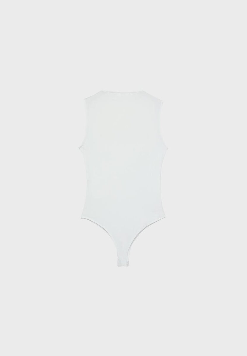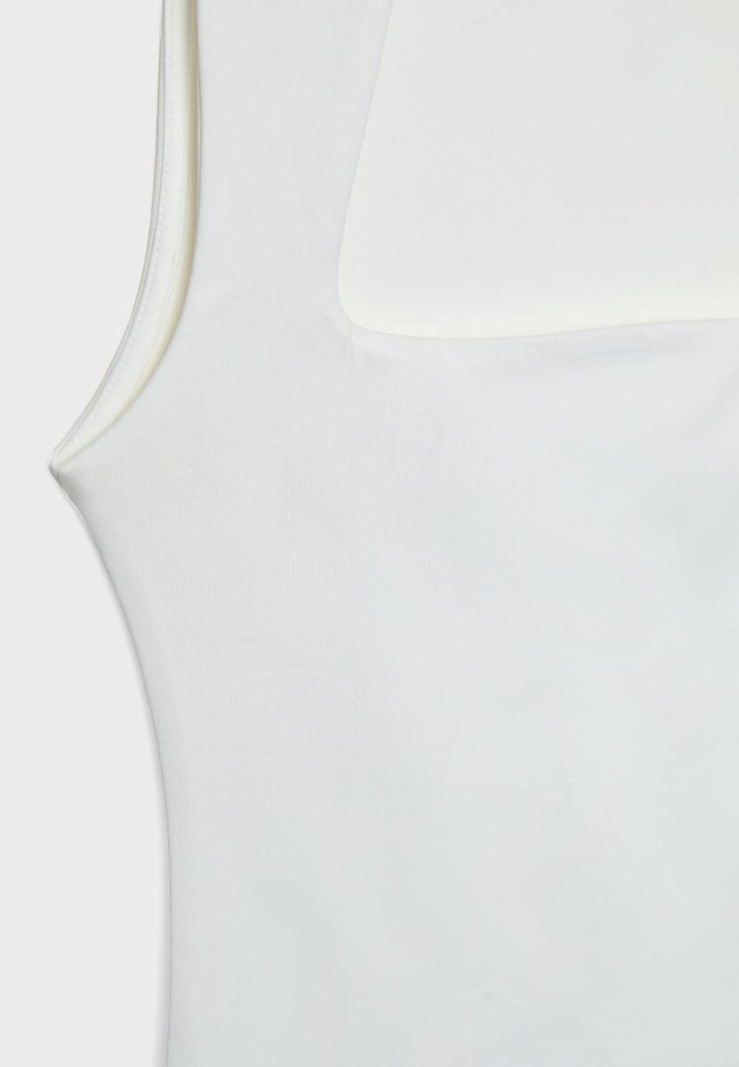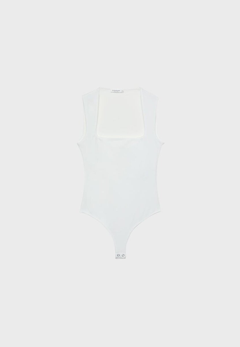 Body ajusté à encolure carrée et larges bretelles. Se ferme dans le bas à l’aide de boutons-pression. Disponible en plusieurs couleurs.