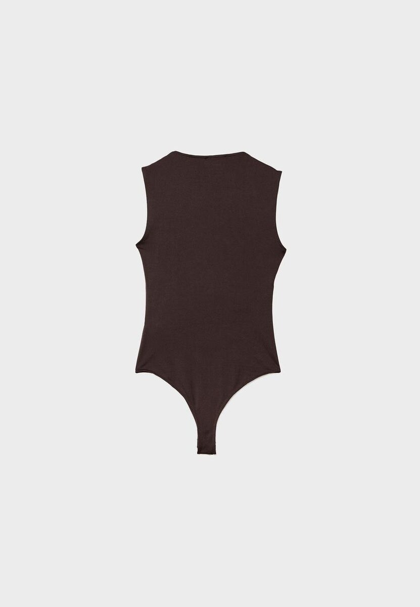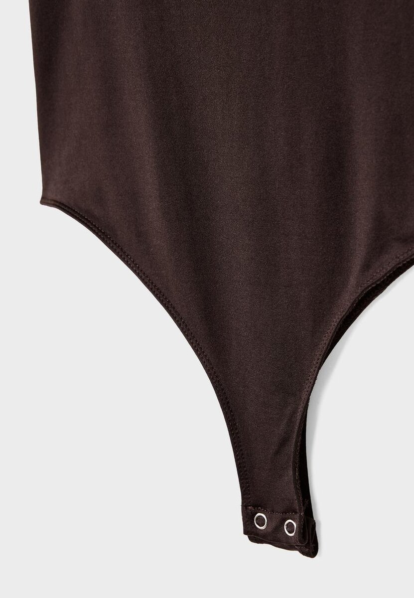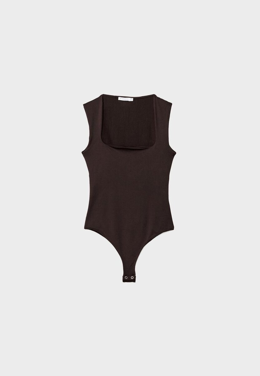 Body ajusté à encolure carrée et larges bretelles. Se ferme dans le bas à l’aide de boutons-pression. Disponible en plusieurs couleurs.