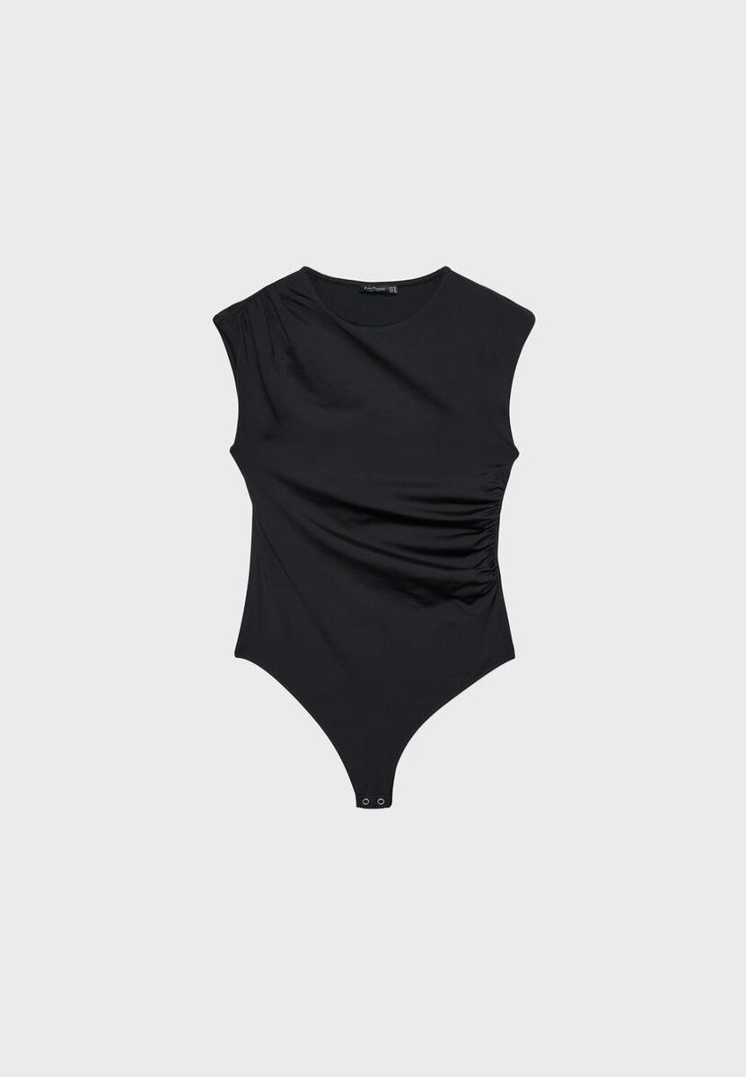 Body ajusté sans manches, col rond et fronces sur le côté. Disponible en plusieurs couleurs.