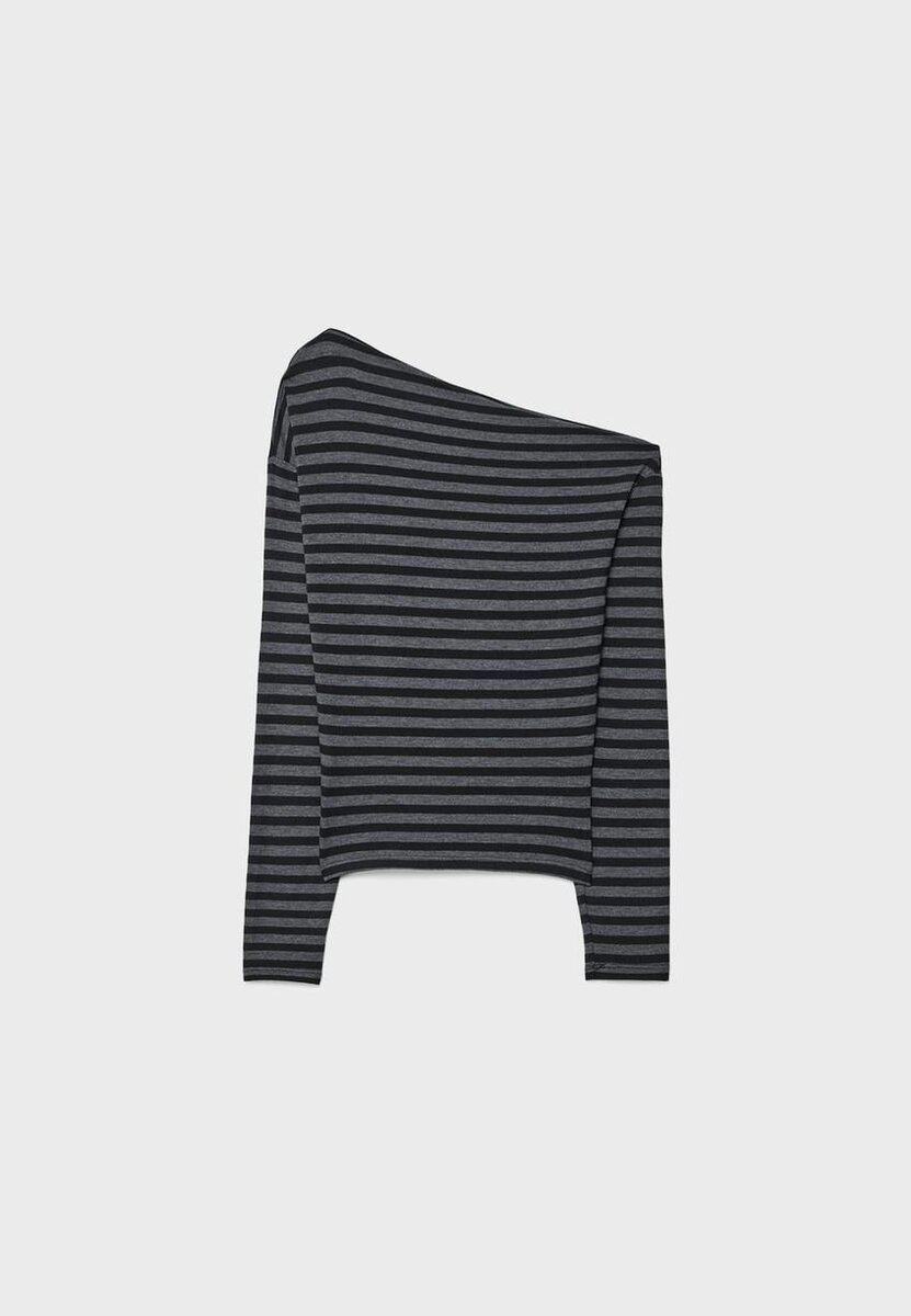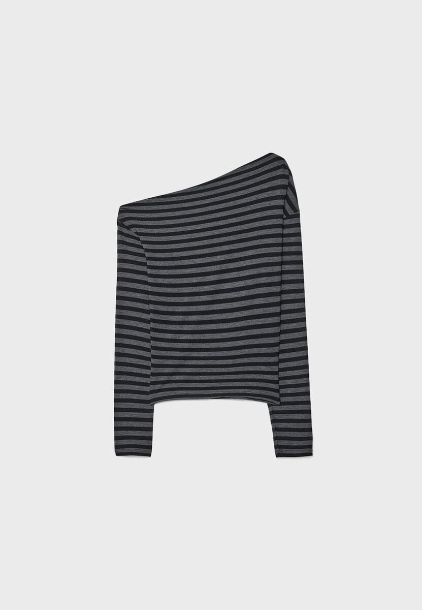 T-shirt à encolure asymétrique et manches longues. Disponible en plusieurs couleurs.