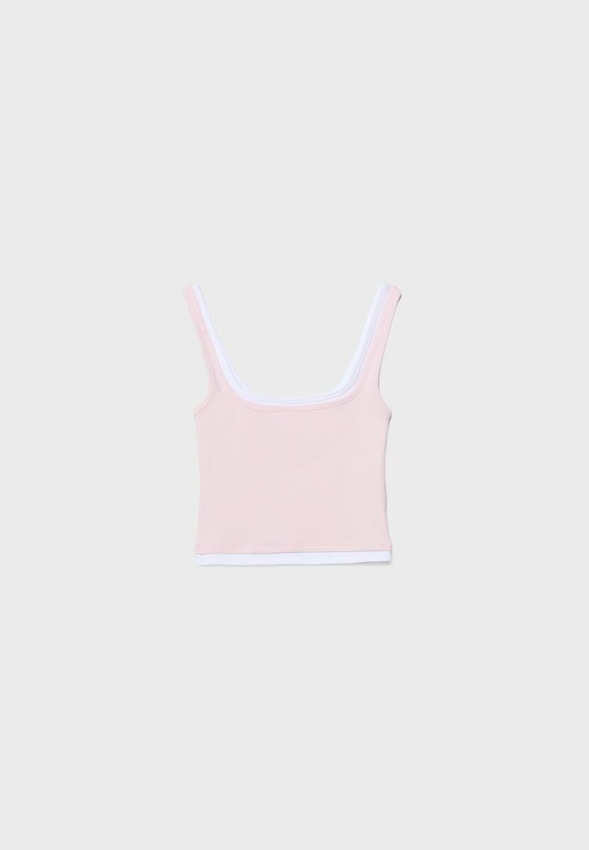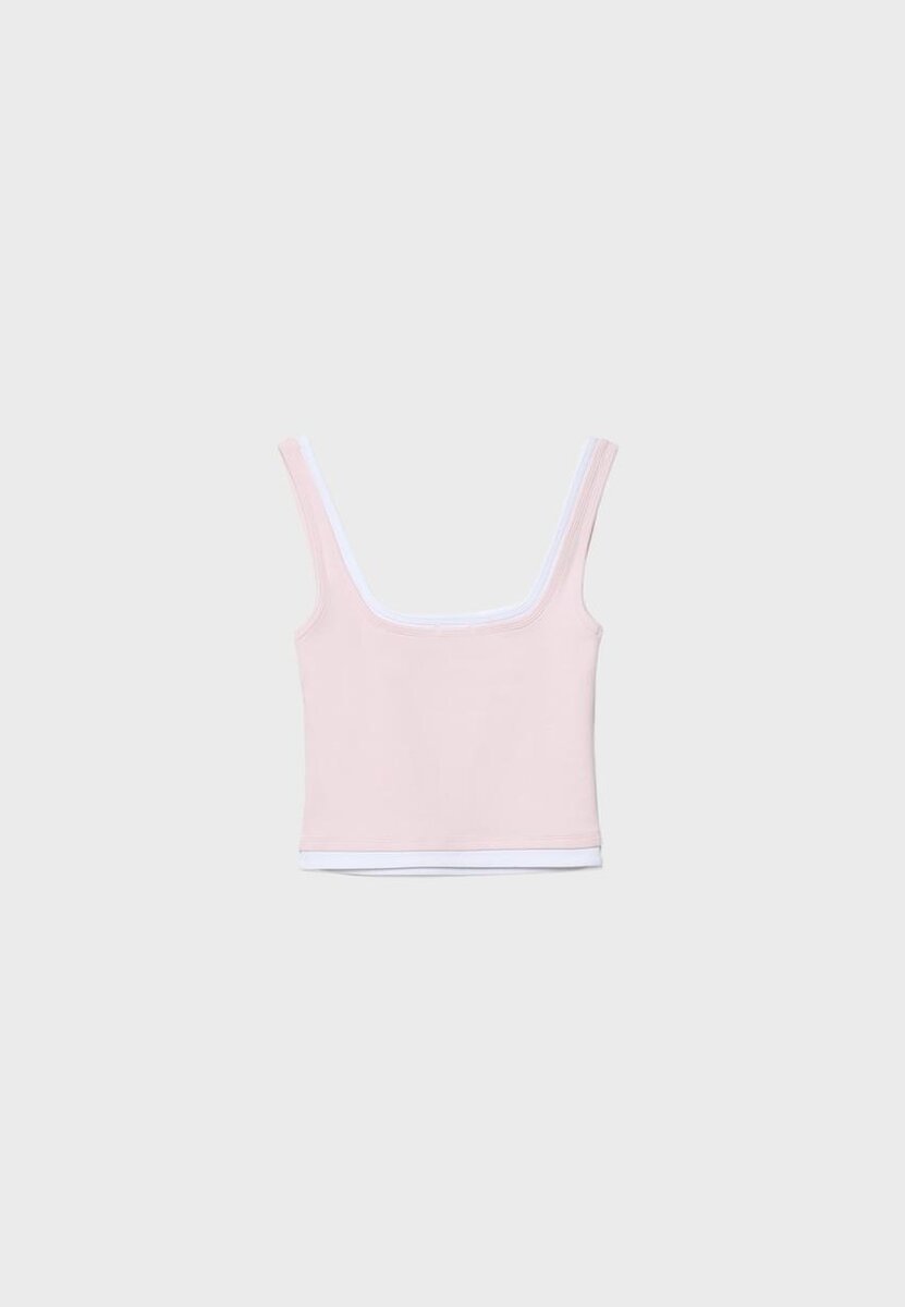 Haut à encolure carrée avec bretelles. Doté d’une superposition de tissu double épaisseur contrastée. Disponible en plusieurs couleurs.