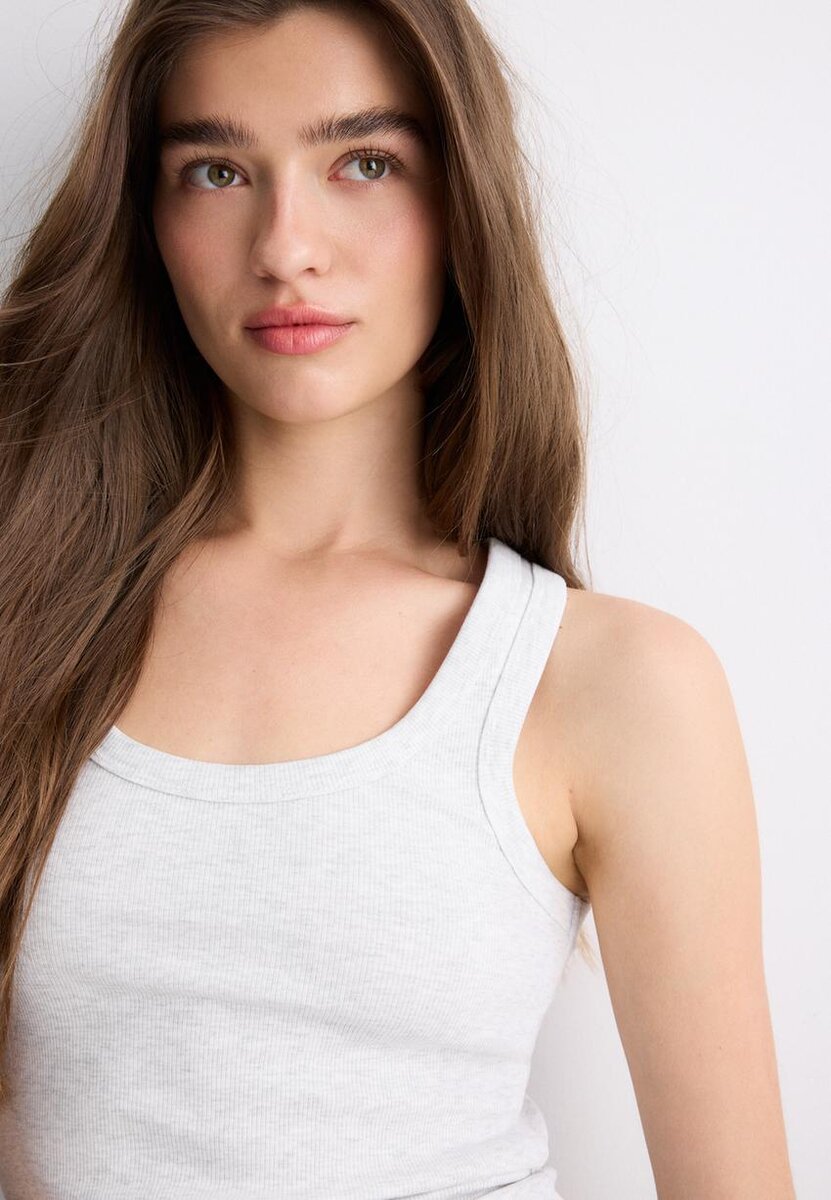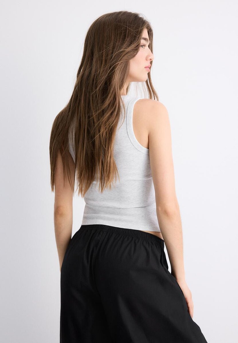 Haut dos nageur en coton côtelé chez Stradivarius pour seulement 14,9 $ Disponible pour une durée limitée. Null pour femmes Toujours tendance, venez le découvrir dès maintenant !