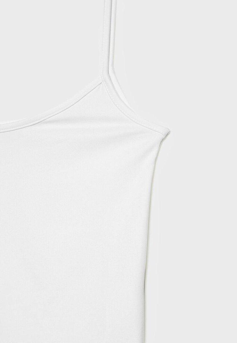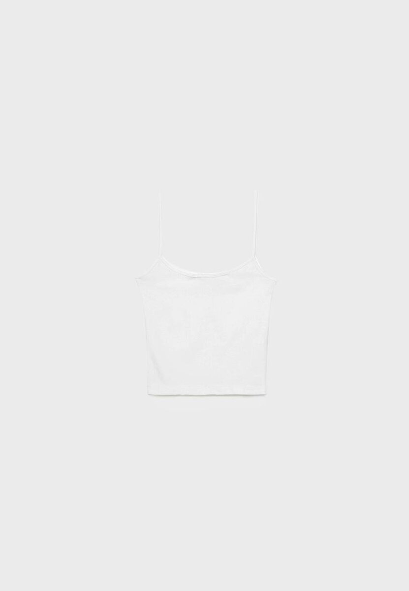Hauts ajustés à encolure ronde et fines bretelles. Disponible en plusieurs couleurs.